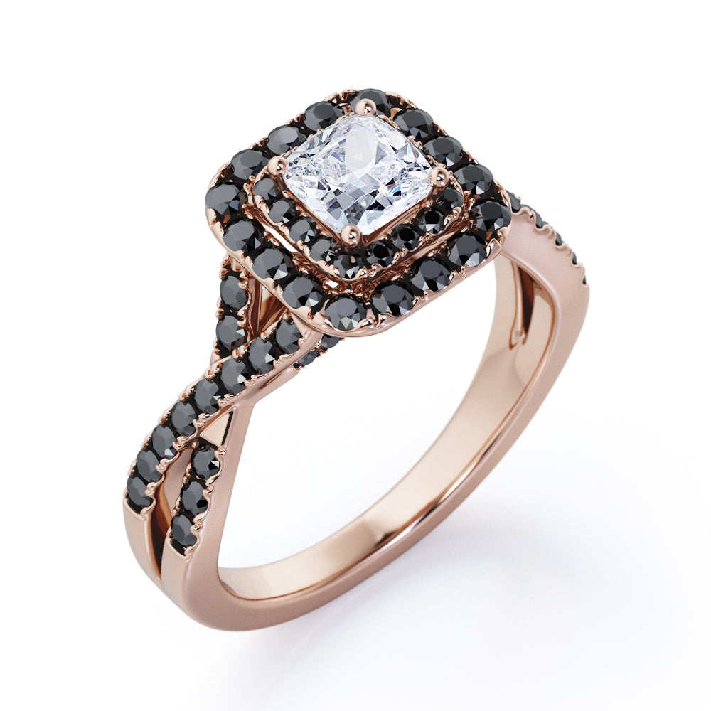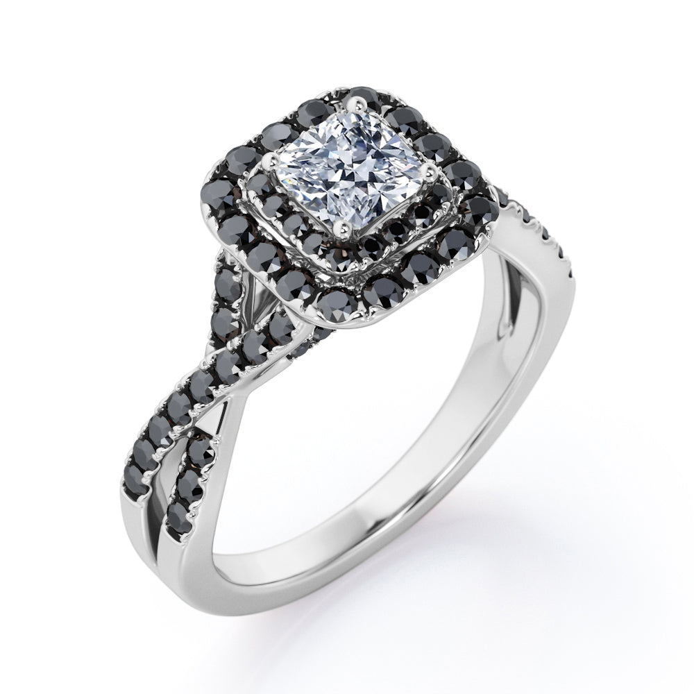 With this Rounded Square Double Halo - 0.5 TCW Princess Cut Diamond with Lab Created Black Diamond - Infinity Pave Engagement Ring - 10K White Gold, your better half will easily stand out from the crowd. Hand-cut with deftness into a lovely shape princess cut by our most talented jewelers, this exceptional affordable engagement ring consists of total 0.50 carat diamond with lab-created black diamond side stones on solid white gold. Distinct and unusual, this affordable engagement ring is ideal for those who wish to express their charisma and uniqueness. This gold and diamond ring will accentuate any outfit the wearer chooses to put on. This affordable diamond engagement ring is stunning and inexpensive, thanks to its reasonable price. If you are looking for a diamond ring for any special event, such as a birthday, an engagement, or a marriage proposal, this diamond promise ring for her is regarded as a symbol of your undying devotion to your partner. Additionally, this diamond band can be customized to your own choice of metal colors: 10K white gold, 10K black gold, or 10K yellow gold. Let's show her how much you care by giving her this gold diamond band ring, and she will never regret it.