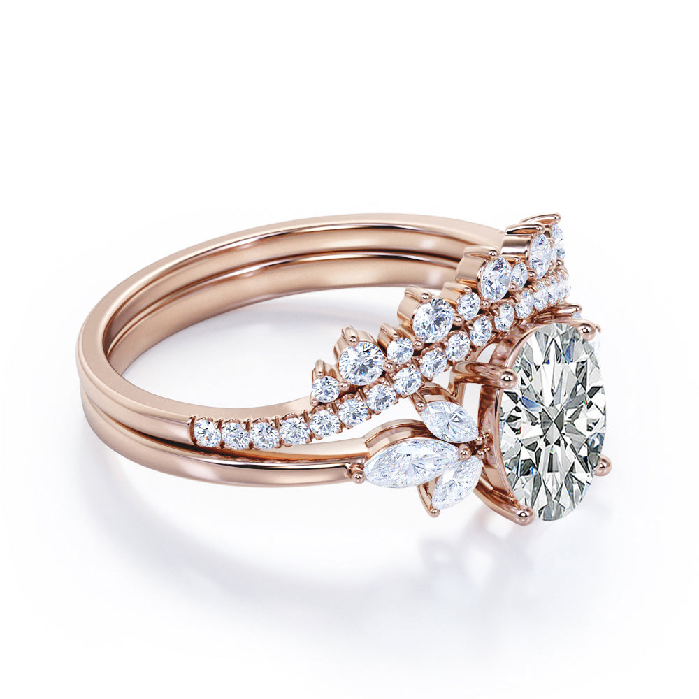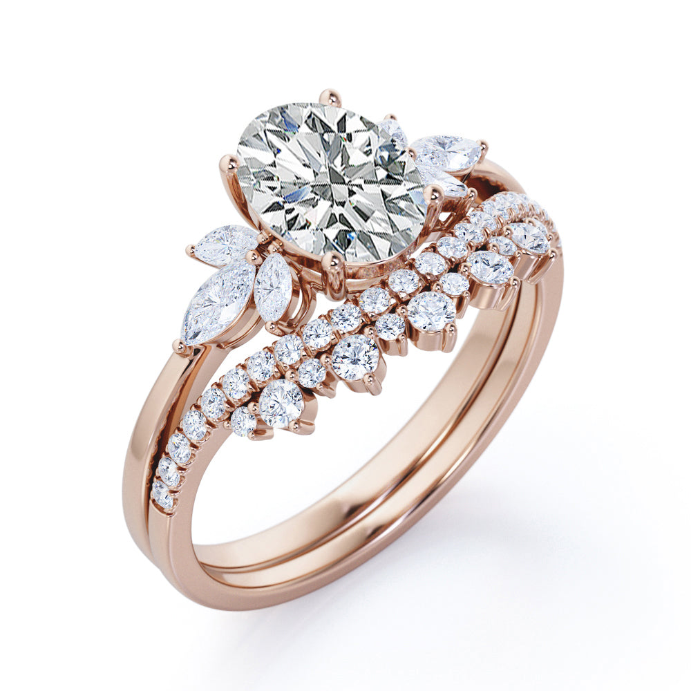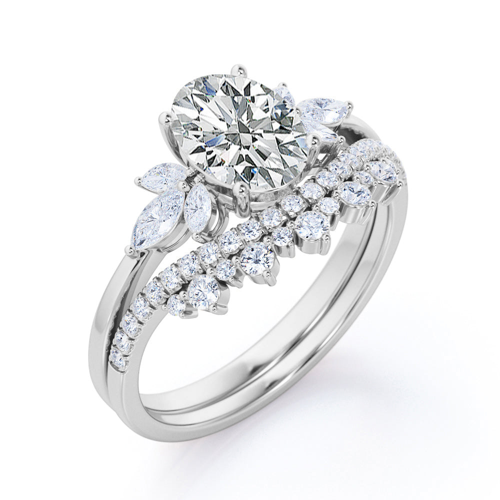 Seven Stone 1 Carat Oval Moissanite Bridal Set