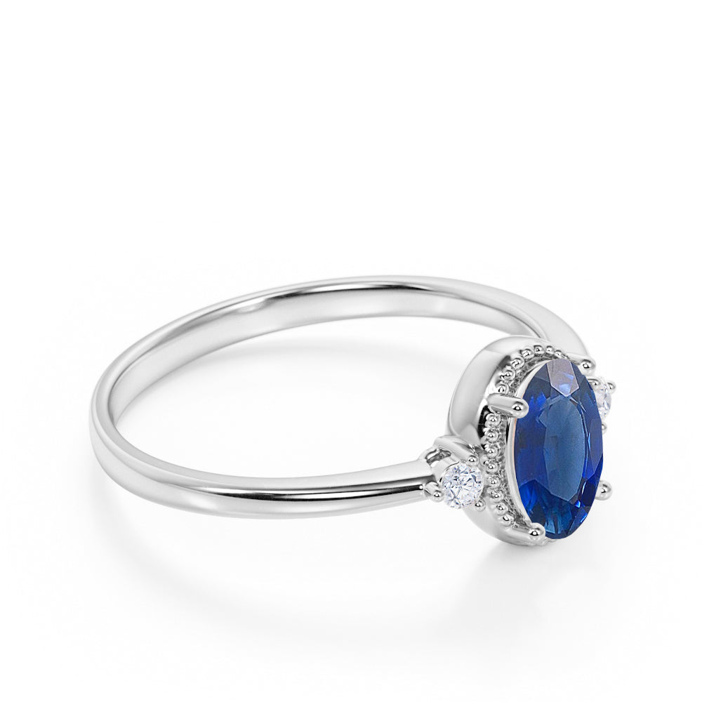 Sale: 1.50 Carat oval cut Blue Sapphire and Diamond Engagement Ring
