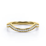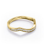 Bring out the sparkle in someone you care about with this Scalloped Pave-Channel 0.15 TCW Round Brilliant Cut Diamond Arched Wedding Band. Handcrafted with care into a wonderful round cut by our lapidary expertise, this exceptional inexpensive diamond wedding band features total 0.15 carat. Distinct and unusual, this diamond wedding ring band is ideal for those who wish to express their charisma and uniqueness. This anniversary diamond wedding band is a great choice for any woman's jewelry collection. This diamond band, the birthstone ring for the fourth month, represents riches and extravagance and would make an excellent gift for friends or your better half. This wedding band can be customized in 18K white, rose, yellow, or black gold over silver, or in 10K, 14K, and 18K gold, based on your preference.