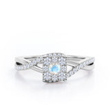 Semi Twisted Infinity 0.9 Carat Round Shape Moonstone and diamond Square Floral Cluster in White Gold