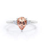 Seven Stone 0.5 carat Pear Morganite and Diamond Dainty Band Engagement Ring in White Gold