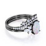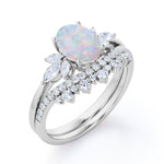 Seven Stone 1.75 Ct Oval Cut Lab Created Opal Bridal Set