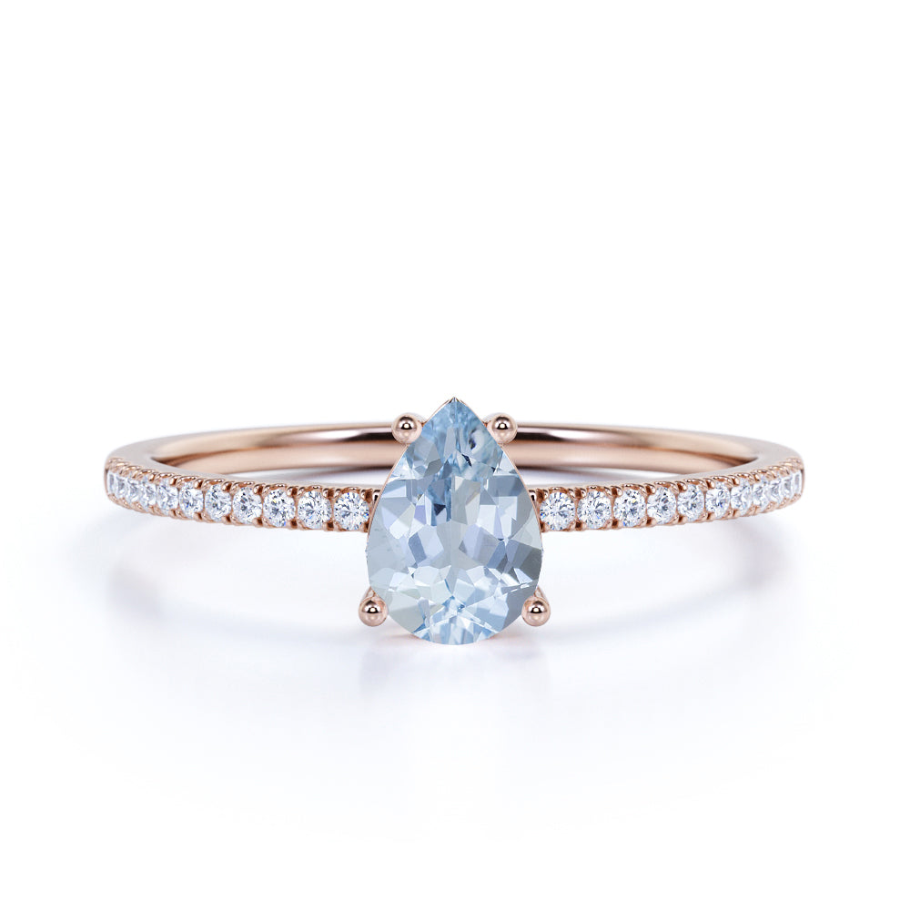 1.25 ct Pear Aquamarine Pave Engagement Ring