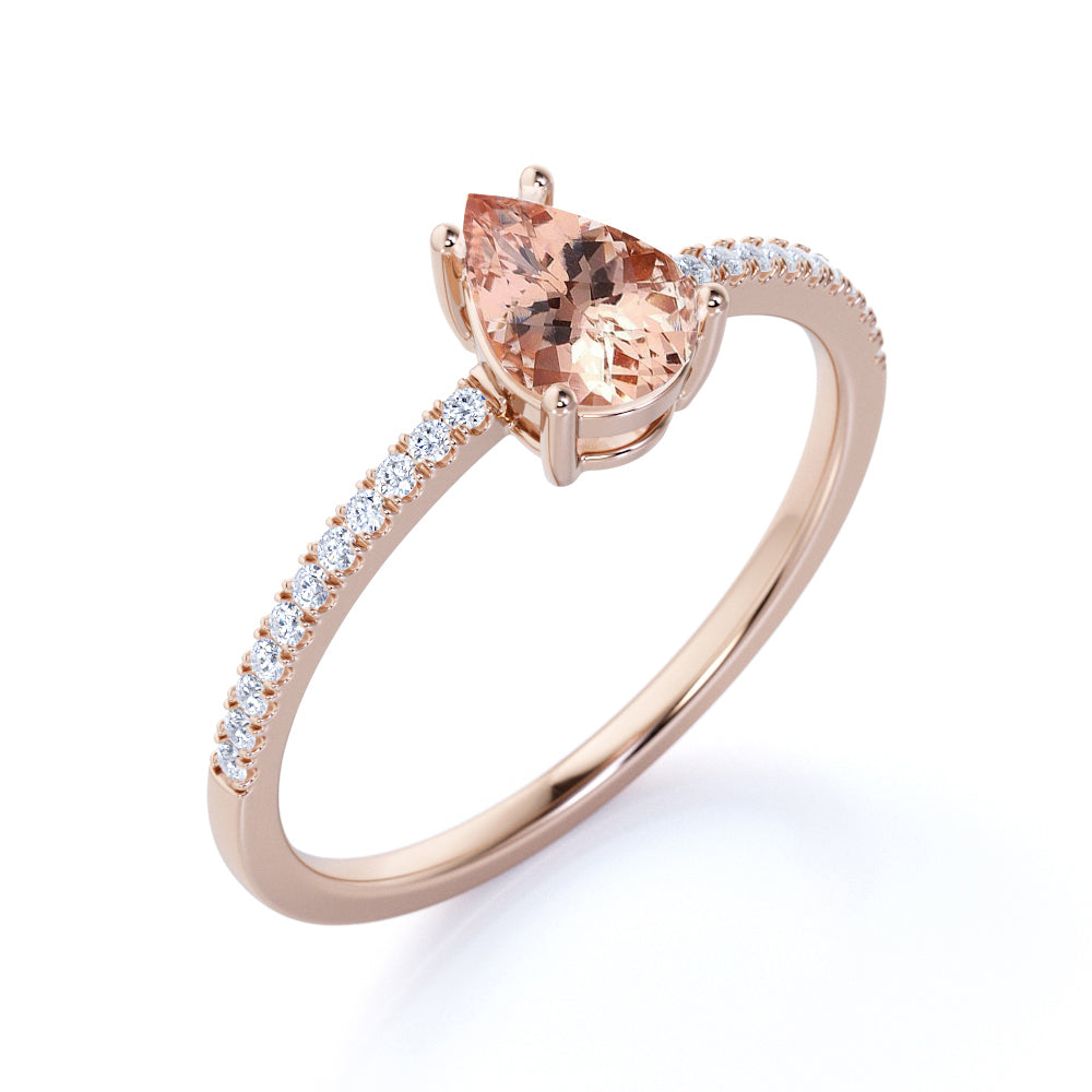This morganite is best for engagement ring or proposal ring. The vibrant color of this ring brings life to the fullest. We can also customize this morganite engagement ring to become an infinity or eternity band which will reflects your love for each other and that love will surely last forever because of this amazing ring. This morganite ring features an approximately 1 carat pear shaped certified morganite, surrounded by .25 carat natural side diamonds, for a total weight of 1.25 carats.