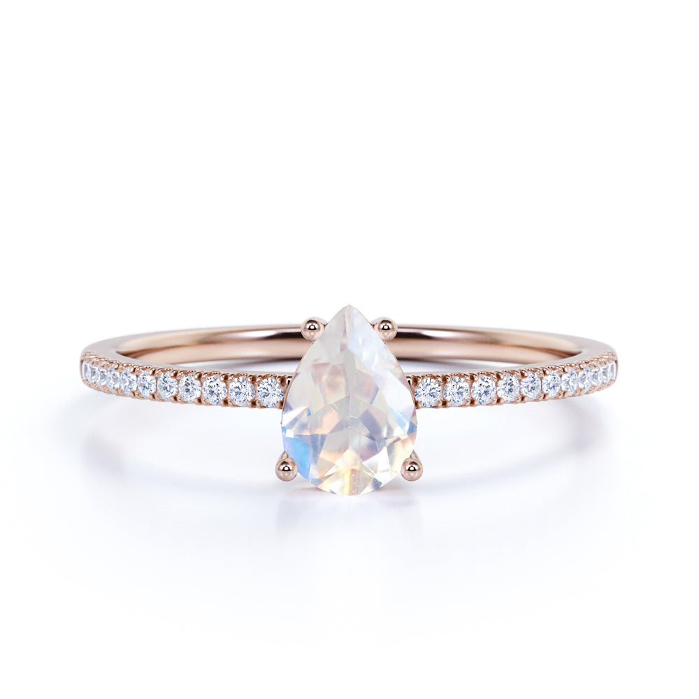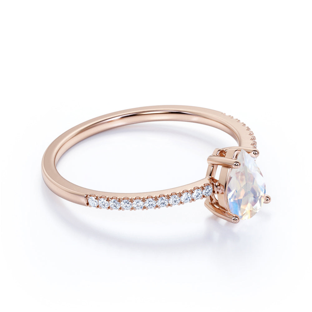 Simple 1.25 Carat Pear Shape Rainbow Moonstone and Diamond Engagement Ring in Rose Gold