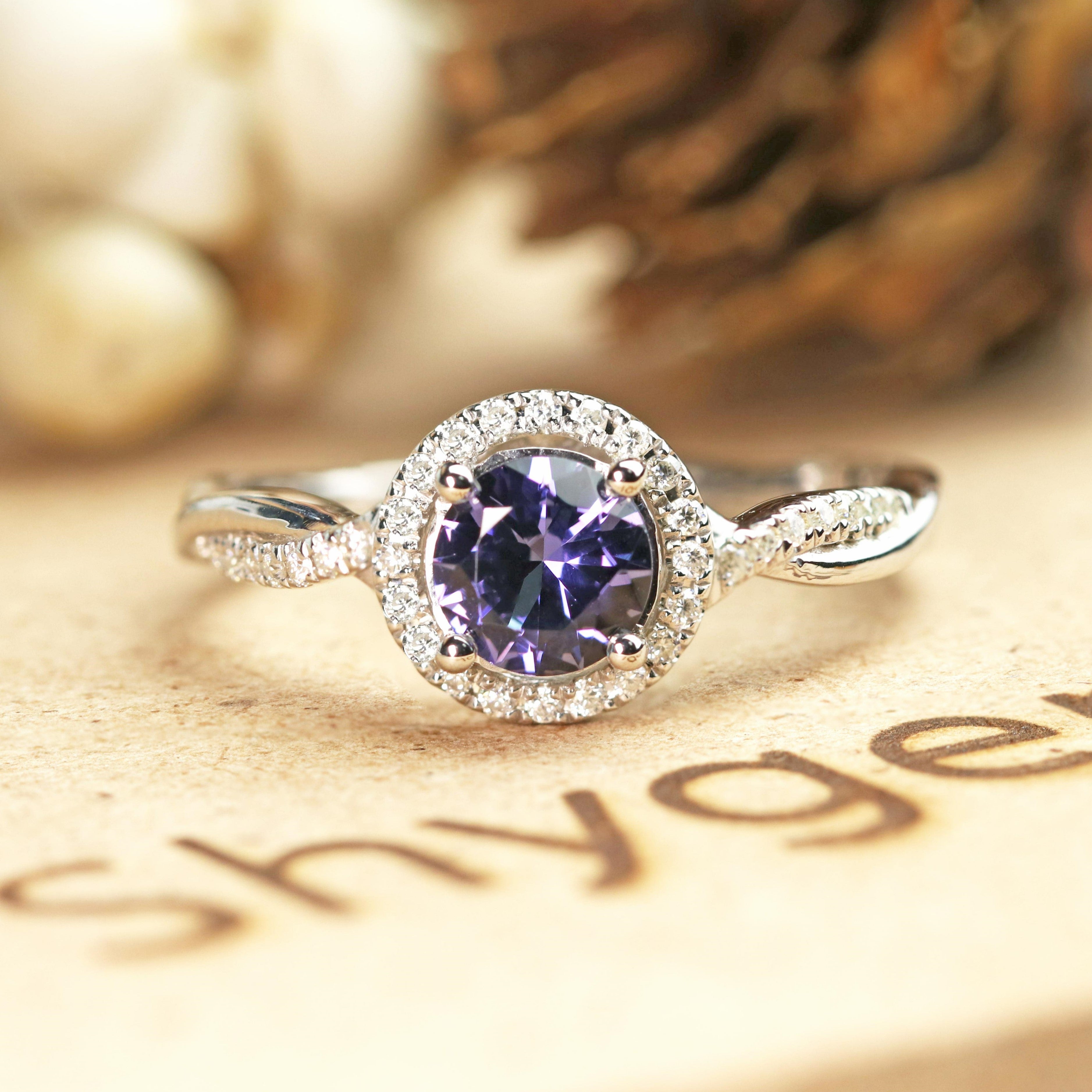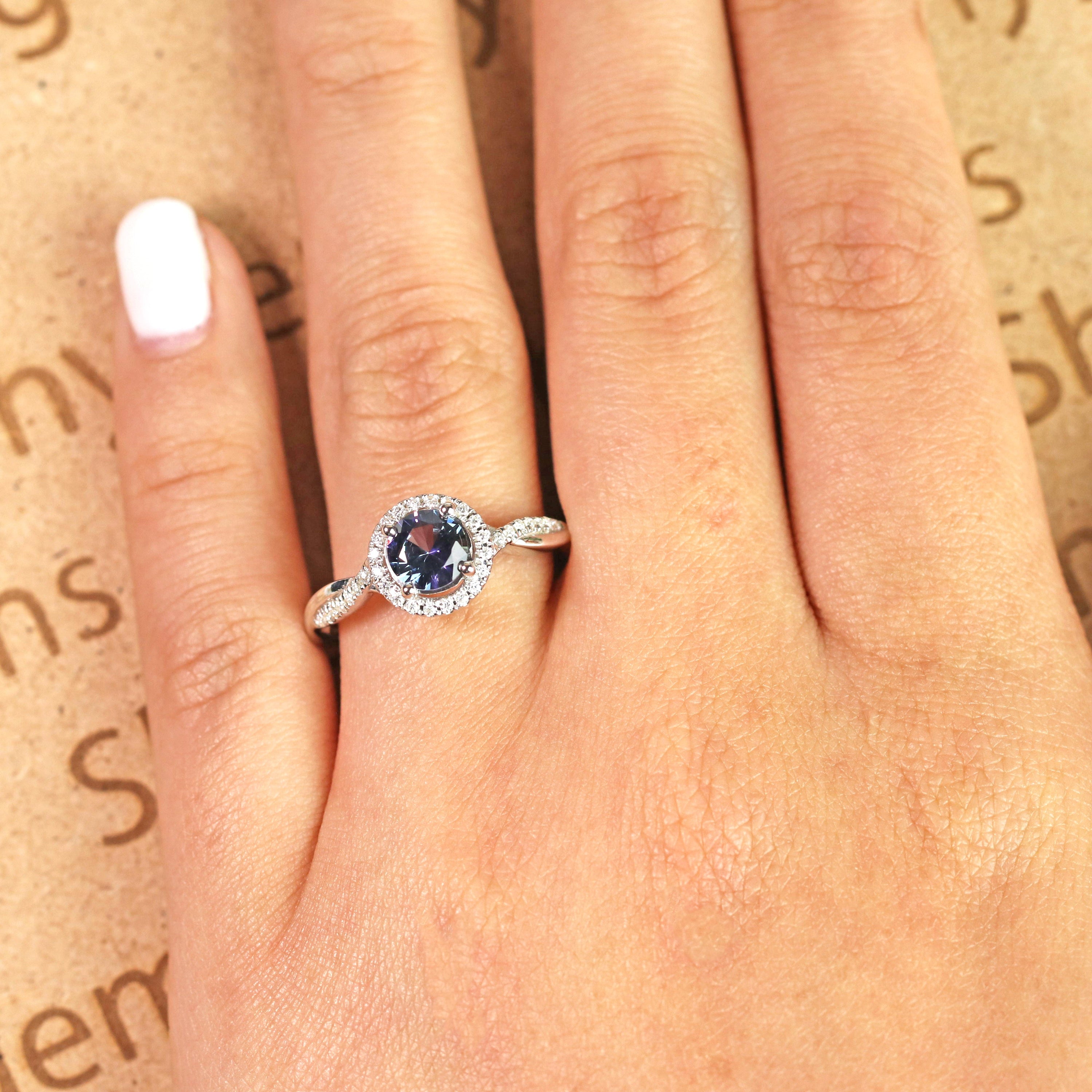 Be on cloud nine with this Simple Halo 1.50 Carat Round Cut Created Alexandrite and Diamond Infinity Pave Engagement Ring. This lovely ring features 1 carat round cut lab grown Alexandrite and .50 carat real genuine side diamond for gold ring and moissanite for silver ring. This minimalist engagement ring can be customized to either 10k, 14K and Gold over Silver and either Black Gold, Rose Gold, White Gold or Yellow Gold. Also, as your satisfaction is our most priority, we will do our best to have your handmade jewelry be carefully and beautifully crafted by our expert jewelers. The order also comes with a 30-day full refund policy. Crowned as June birthstone, this flawless synthetic Alexandrite ring will bring hope as well as encouragement to you. With its unique ability to exhibit two colors, this ring will make you stand out from others. This fascinating ring is a perfect match for those who are looking for symbol of luck, hope and good fortune. Ornament your love story with this stunning color changing lab made Alexandrite ring inviting more happiness and joy into your marriage life. Own this ring which displays one of the most remarkable color changes and stand out from the rest. Create a fascinating look on your finger with this lab created Alexandrite ring for women which is available in both solid gold and sterling silver. This ring will bring love and hope to its wearer. This engagement ring will create a timeless and fabulous look on your finger. Impress your special someone with this beautiful and affordable lab created Alexandrite ring. It is the perfect match for those who are looking for a remarkable gemstone rings as Alexandrite embodies their own unique color-change ability and uplifting meaning.