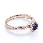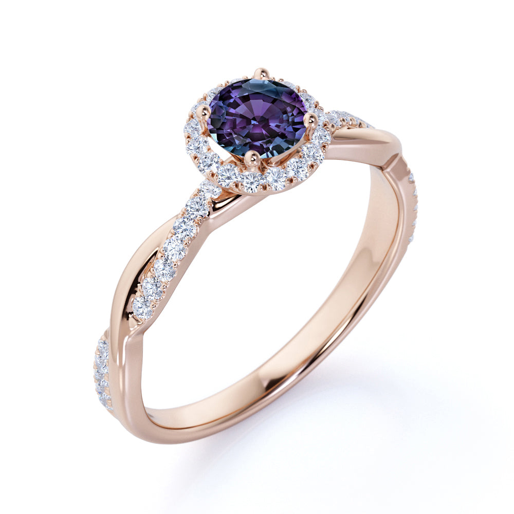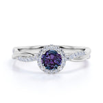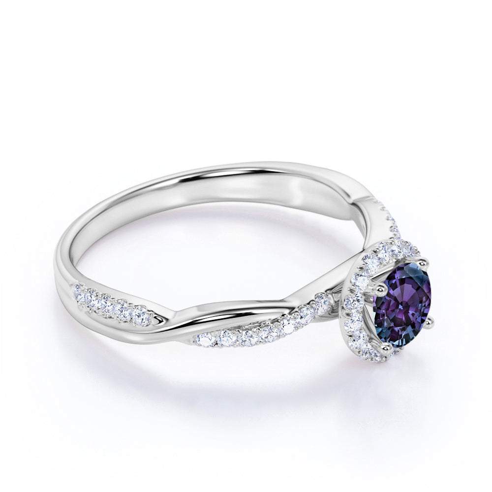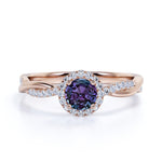 Simple Halo 1.50 Carat Round Cut Created Alexandrite and Diamond Infinity Pave Engagement Ring