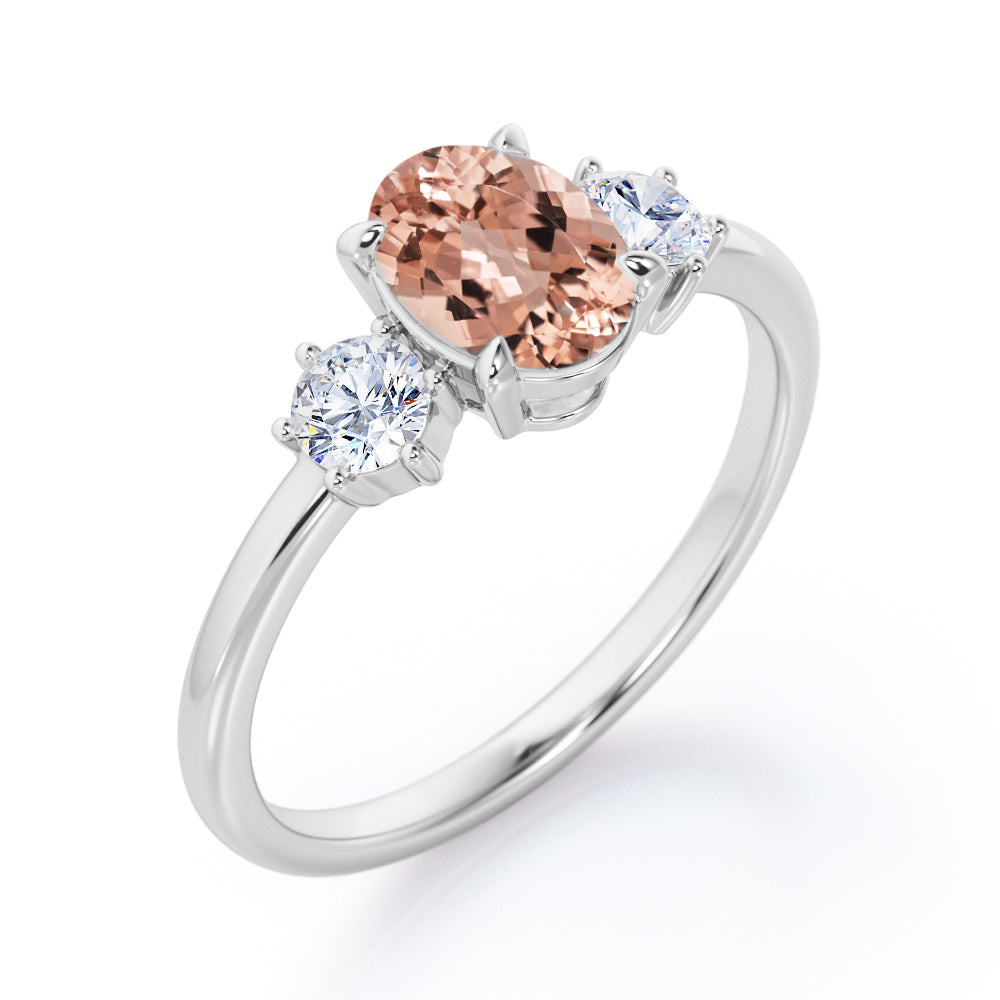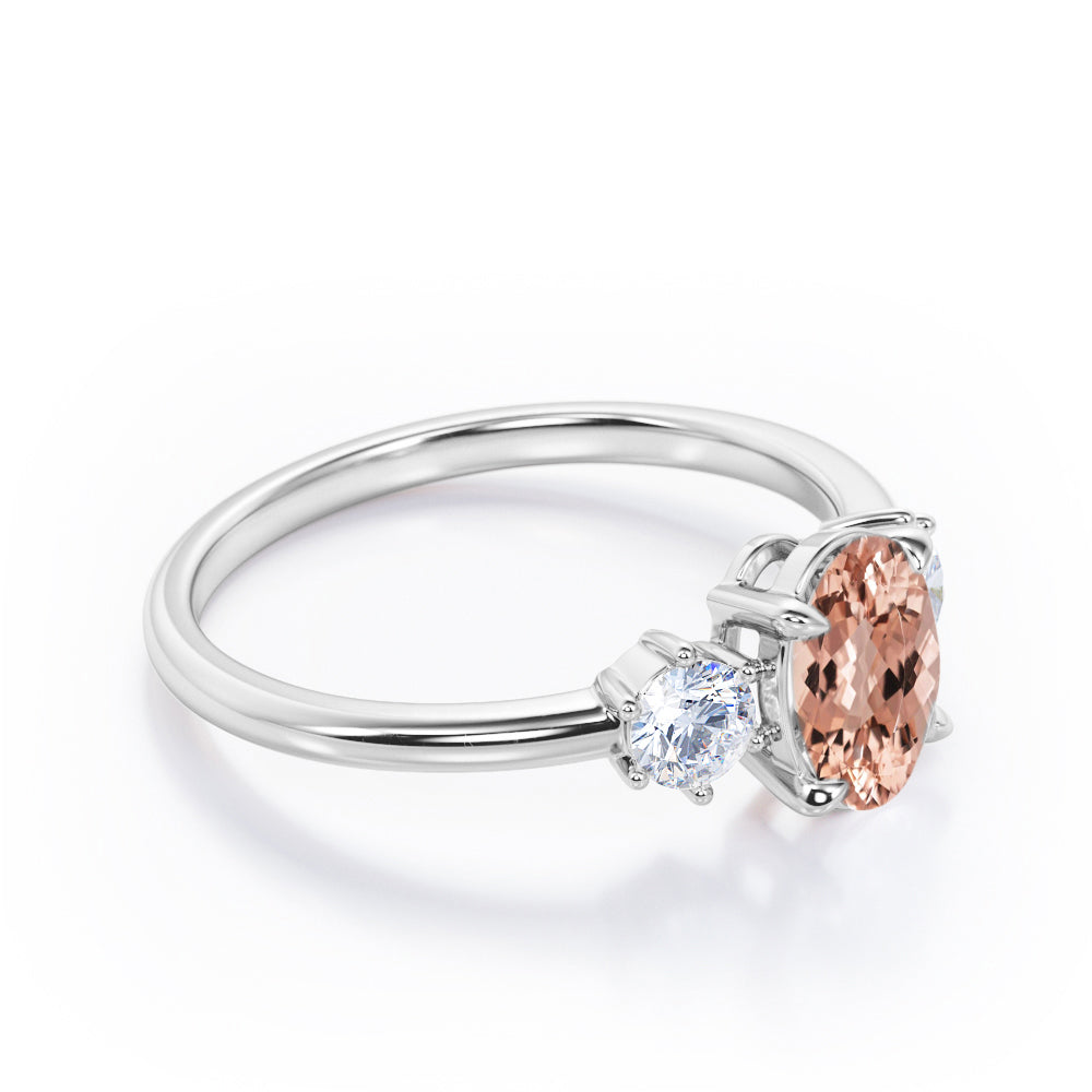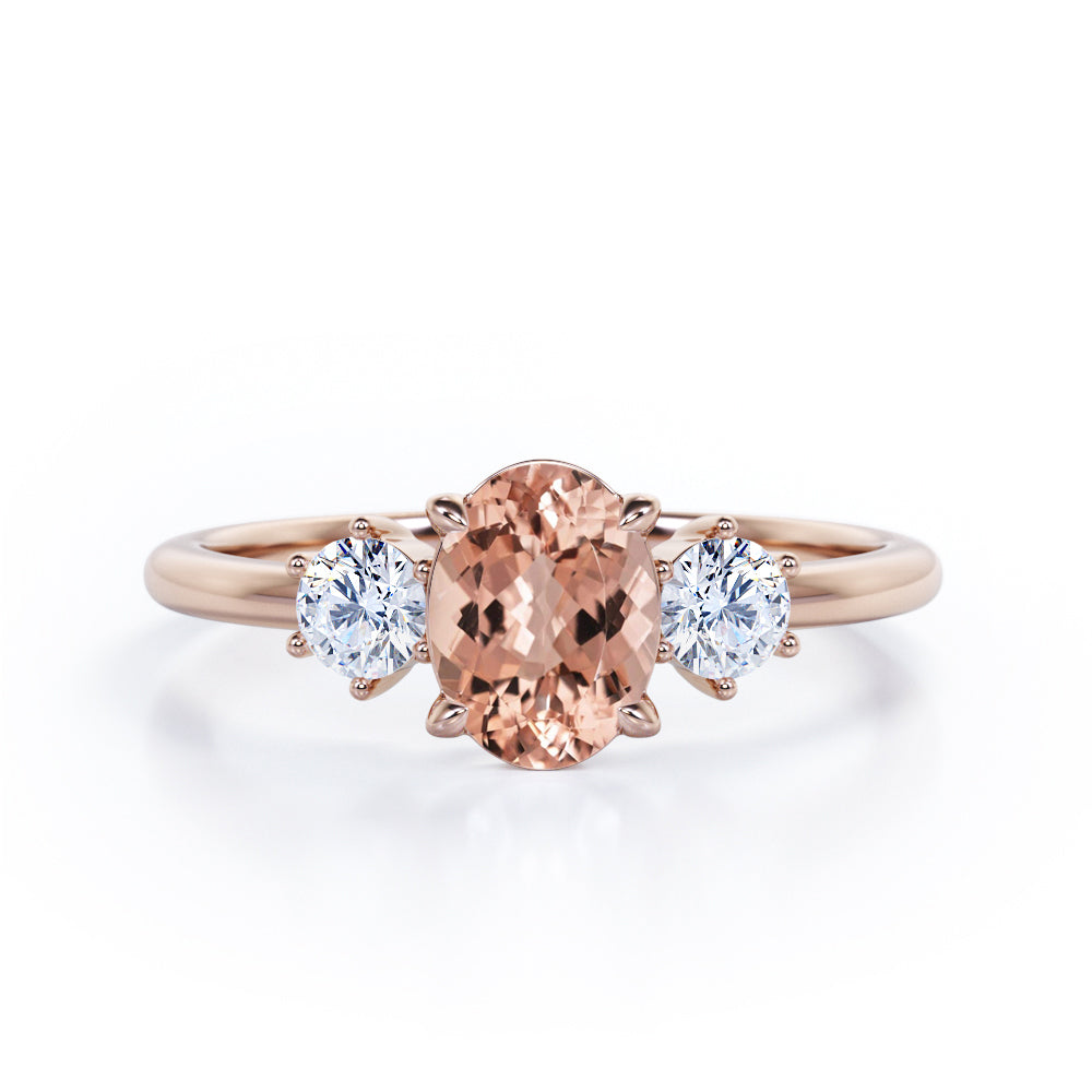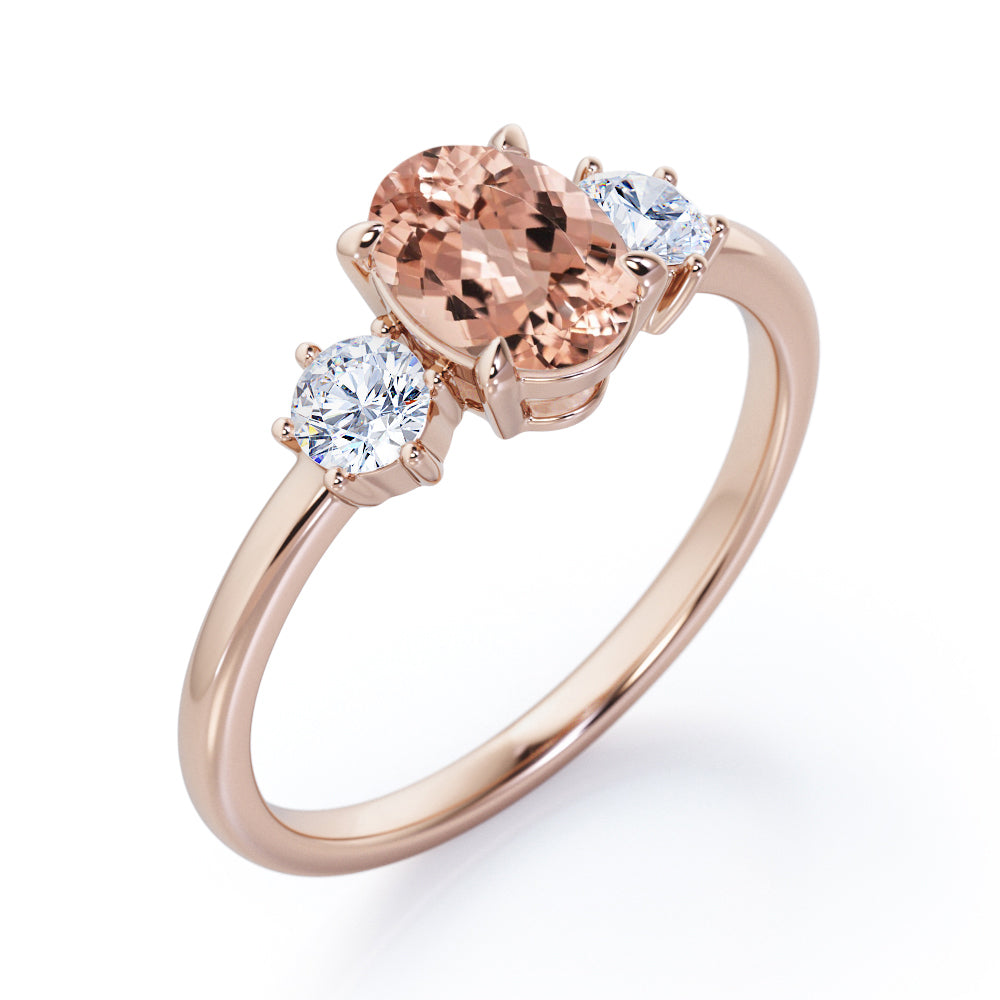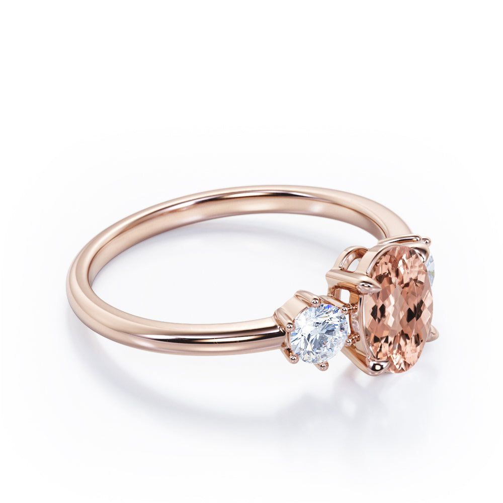 Simple Trio Stone 0.8 carat Oval Morganite and Diamond Engagement Ring in Rose Gold