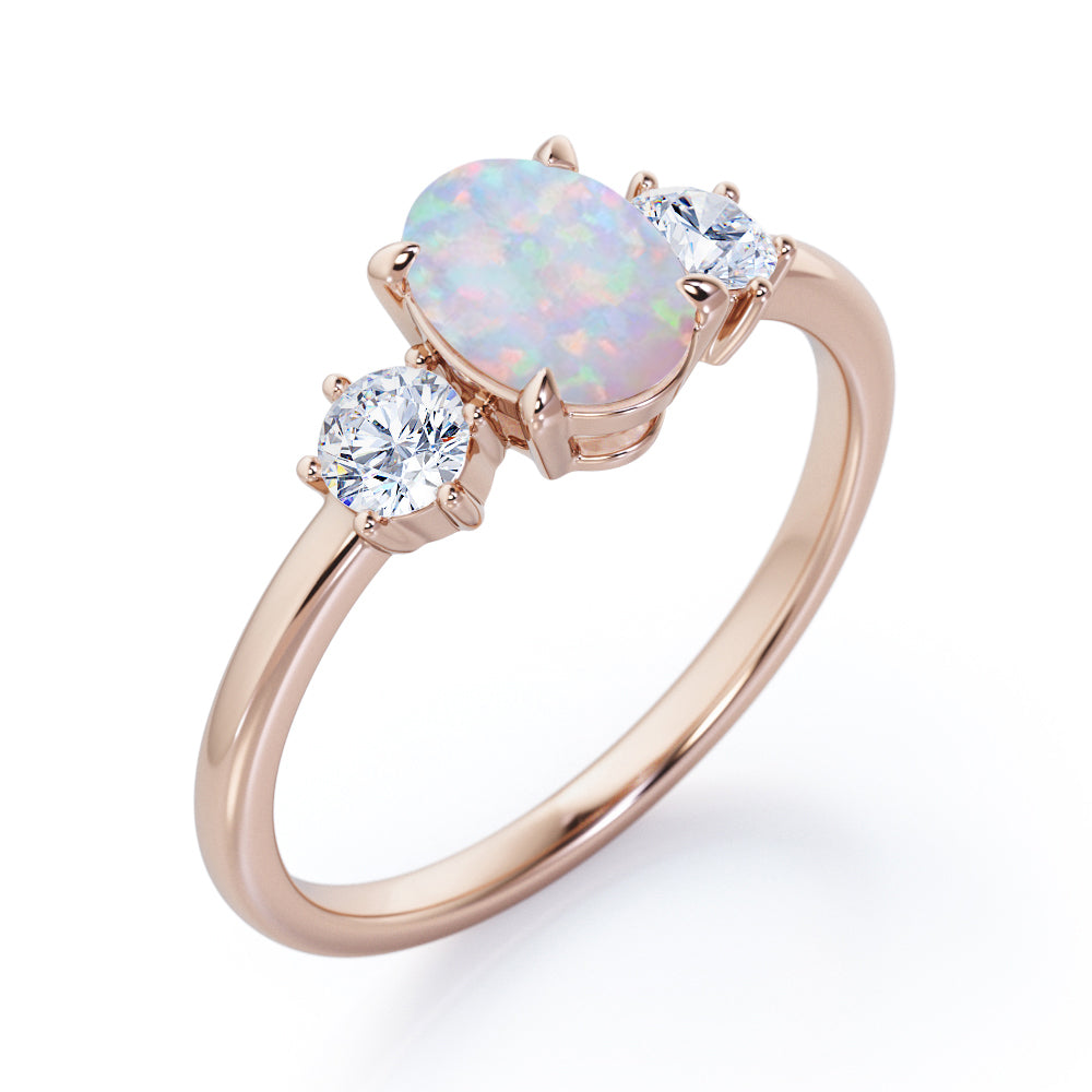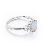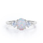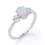 Three Stone 1.1 Ct Oval Cut Lab Created Opal Engagement Ring