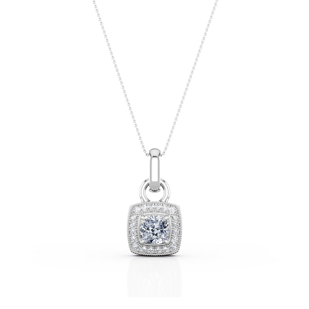 On any occasions, this Single Bail Half Bezel 1.1 Carat Cushion Cut Certified Moissanite and Diamond Surface Prong Pendant Necklace in Yellow Gold will be the ideal gift for your significant other. Personalized, Customized, As unique as you are. This solitaire pendant displays an approximate 1 carat cushion certified Moissanite and .10 carat side diamond, for a total 1.1 carat. Our moissanites are D (colorless) in color and VVS1 in clarity. Each order comes with a certificate of authenticity. Alternative to traditional diamond, Moissanite is one of the most popular gemstones. It can be customized to either Rose Gold, White Gold, Yellow Gold or Black Gold. Also, it can be made in either 18k Gold over Silver, 10k Gold, 14k Gold or 18k Gold. As we understand the essentials in buying jewelry, please rest assured that your pendant will be precisely handcrafted by our experienced and expert jeweler. Likewise, your order will come with satisfaction guarantee policy. If in the case that it do not meet your expectations, you can get a full refund without question asked within 30 days upon receipt of the item. Singular and exceptional beauty, this pendant necklace make a perfect addition to any jewelry collections. Its glittering and brilliance never fails to impress! All eyes will be brought to your neck. Suitable for daily wear, its design simply matches and enhances any style of wearers. It is one of the sublime gifts for any events such as Anniversaries, Birthday, Mother's Day, Valentine's, Graduation, Christmas, etc. Precisely handmade to ensure that every part of it displays the best brilliance and quality. Shining bright, this pendant necklace will make wearer feel like they were on cloud nine. Every order comes with silver chain. Customized, Personalized, The sublime gift for your loved one.