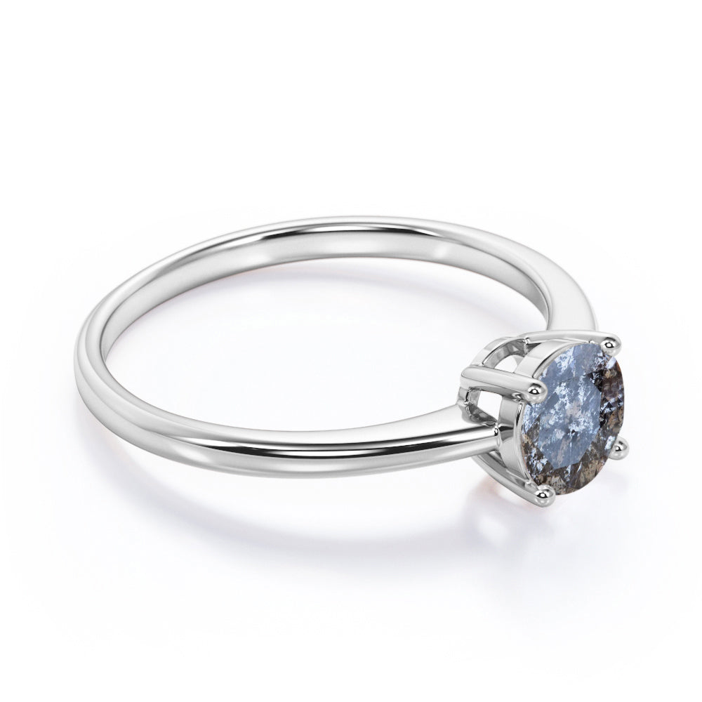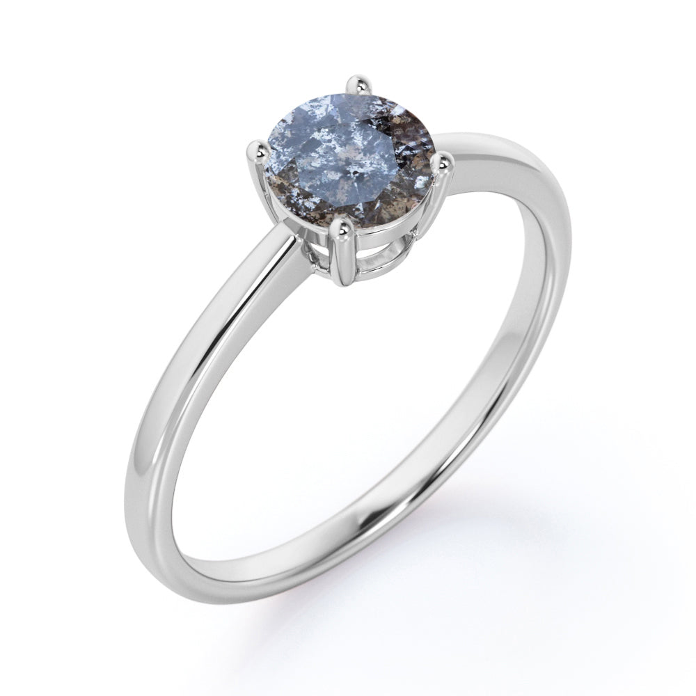 Single Stone .50 Carat Round Cut Natural Salt and Pepper Diamond - Celestial Diamond - Solitaire Engagement Ring in 18k White Gold over Silver