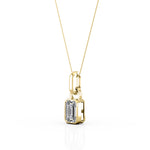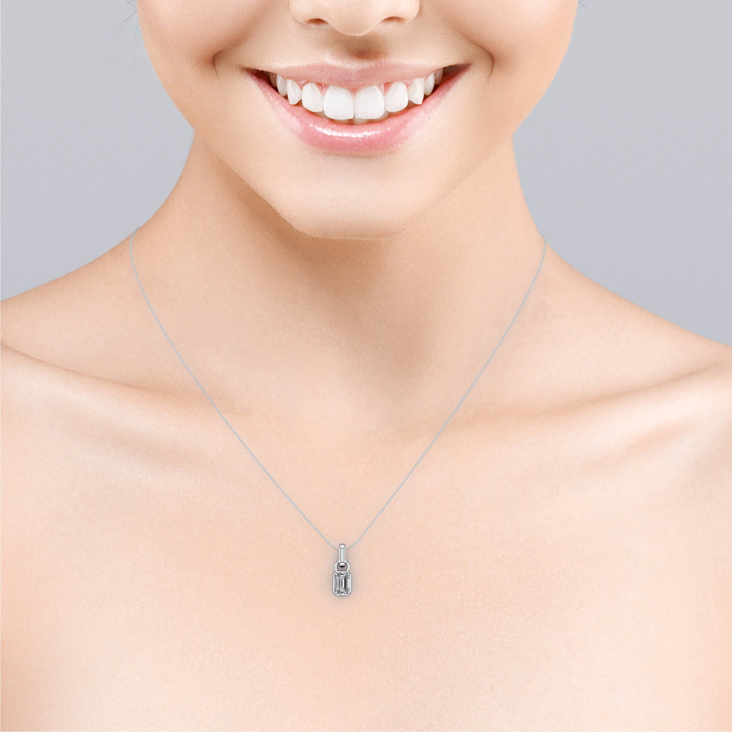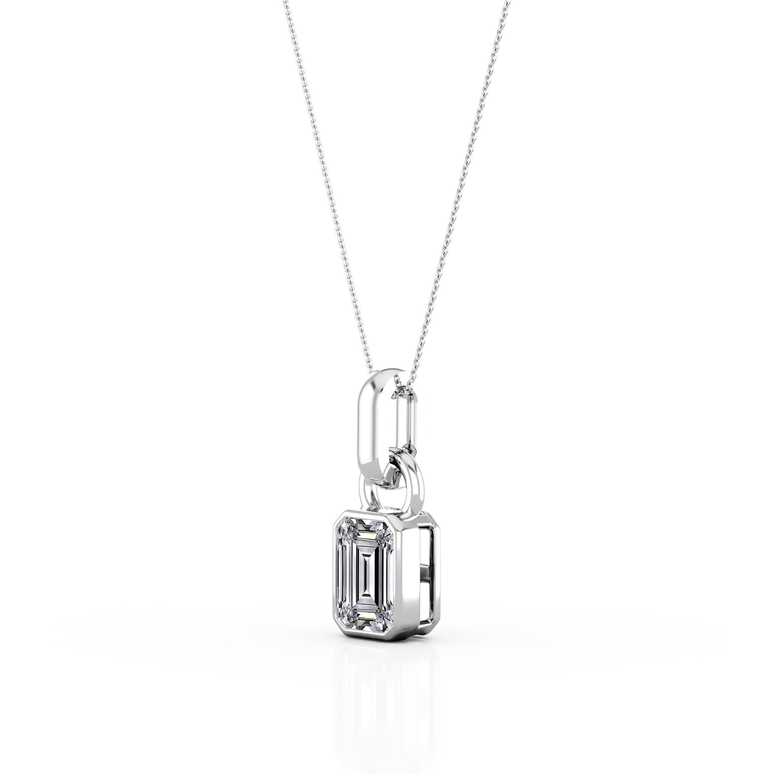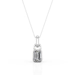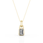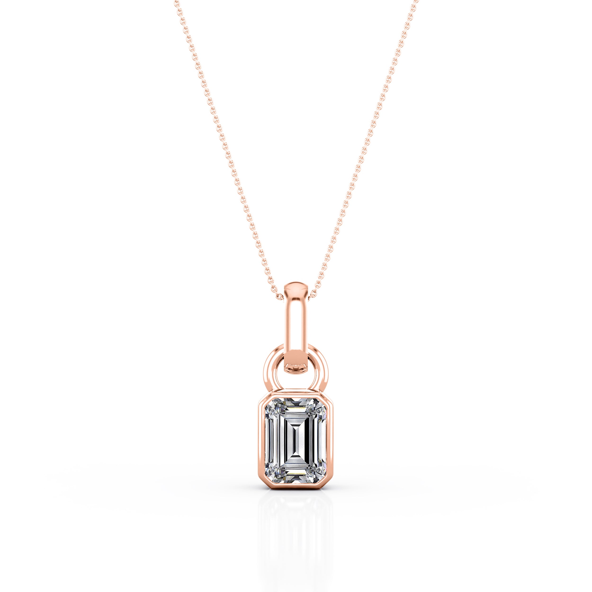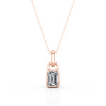 Single Stone Bezel Set 1 Carat Emerald Cut Certified Moissanite Stud Pendant Necklace in Rose Gold