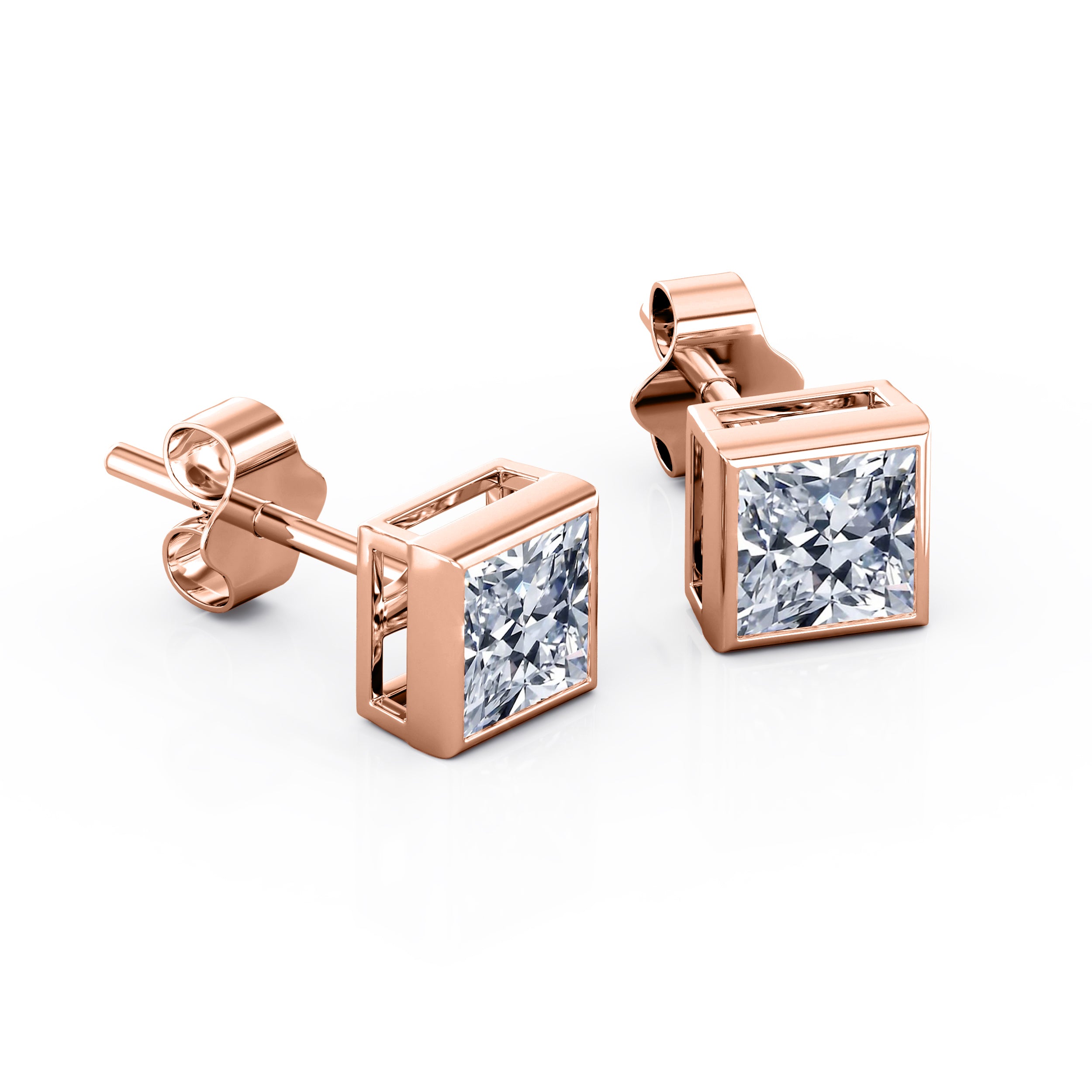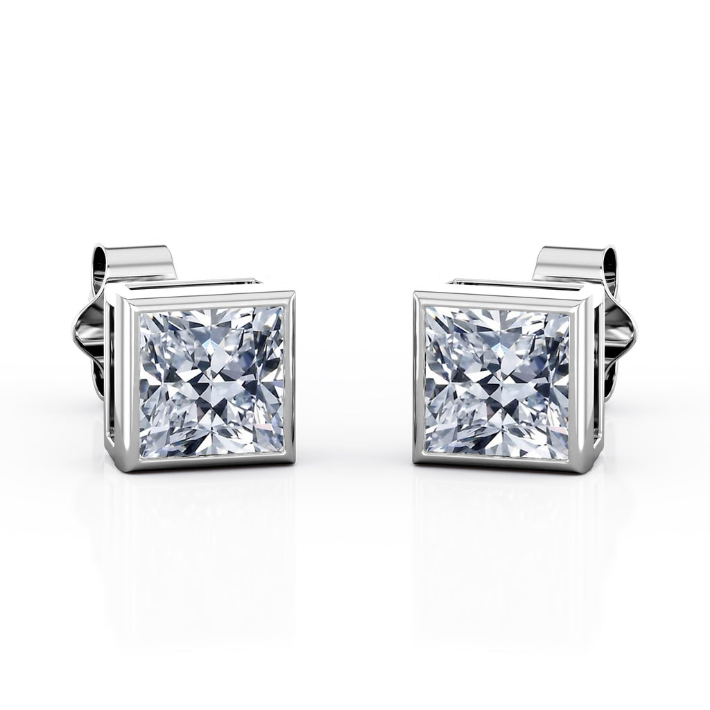 Single Stone Bezel Set 1 Carat Princess Cut Moissanite Simple Ear Studs in White Gold