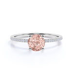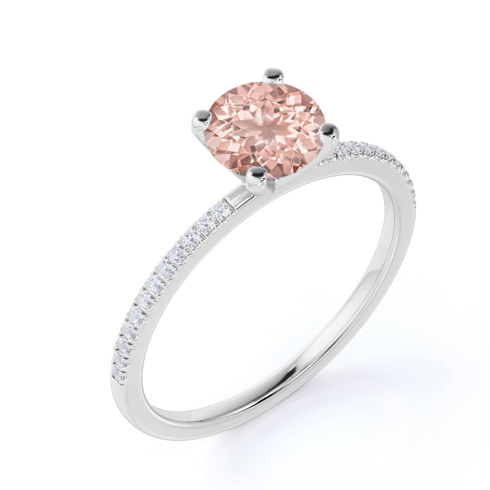 Six Prong Set 1.25 Carat Round Cut Morganite and Diamond Engagement Ring in White Gold