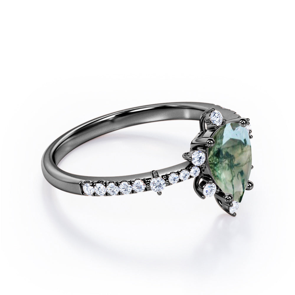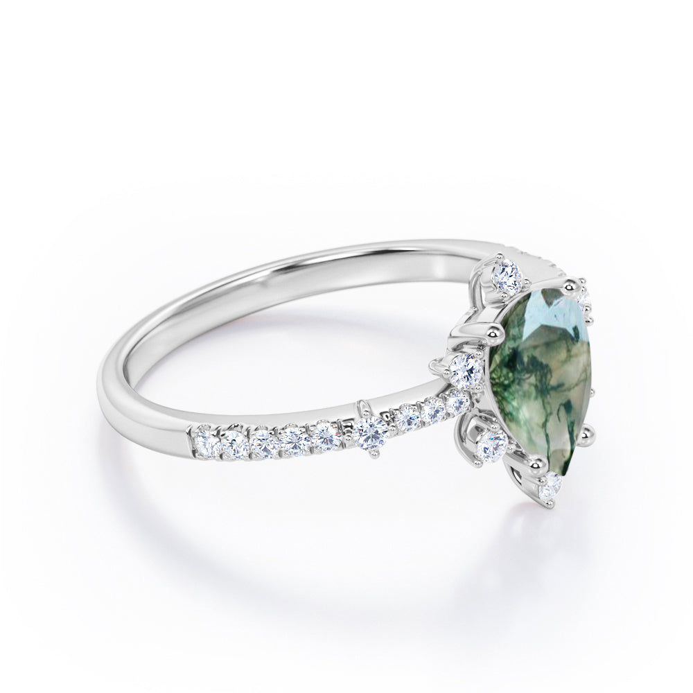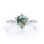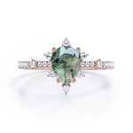 Pave 0.7 Carat Pear Moss Agate Engagement Ring