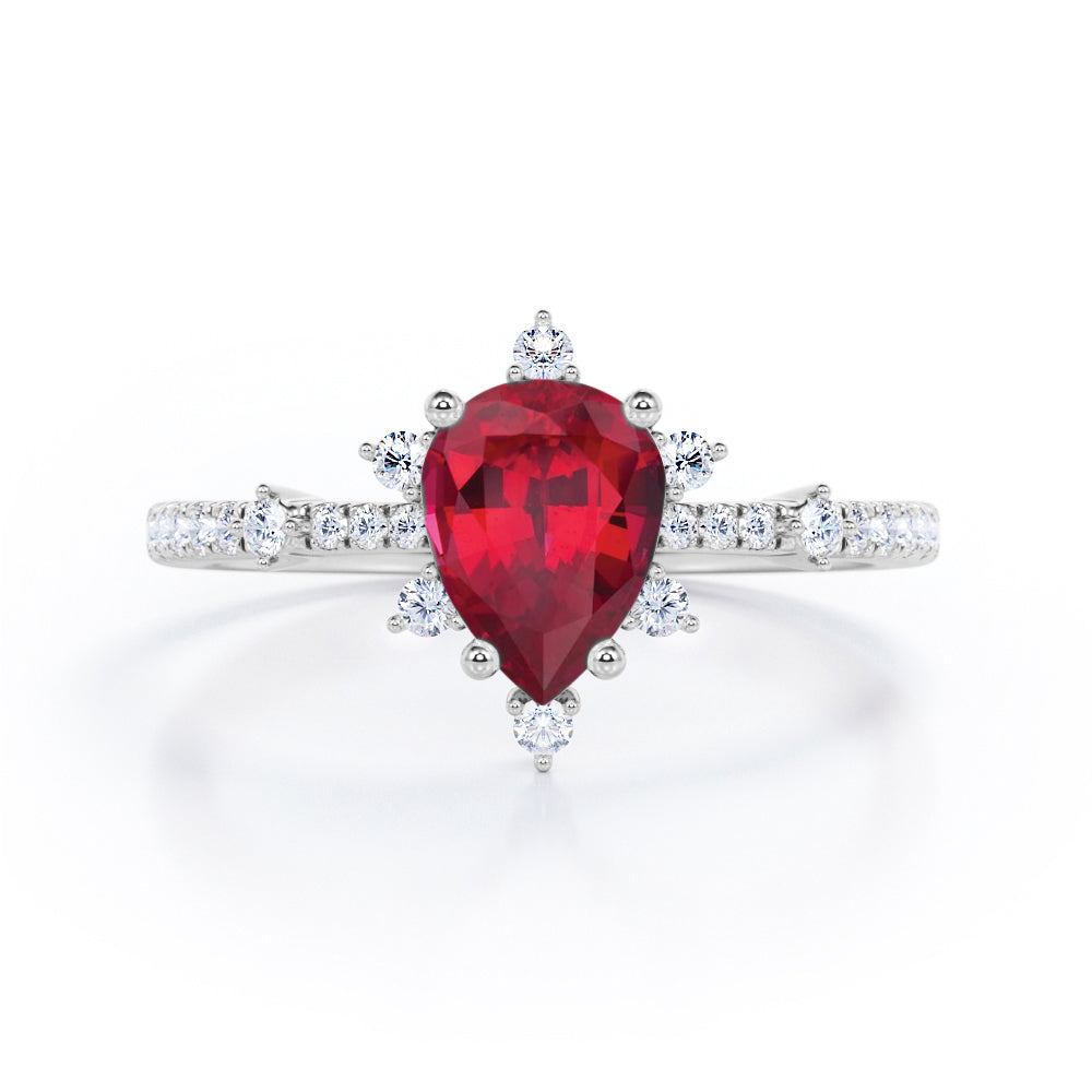 Snowflake 0.7 carat Pear Lab Ruby and Diamond Classic Engagement Ring in White Gold