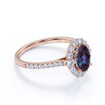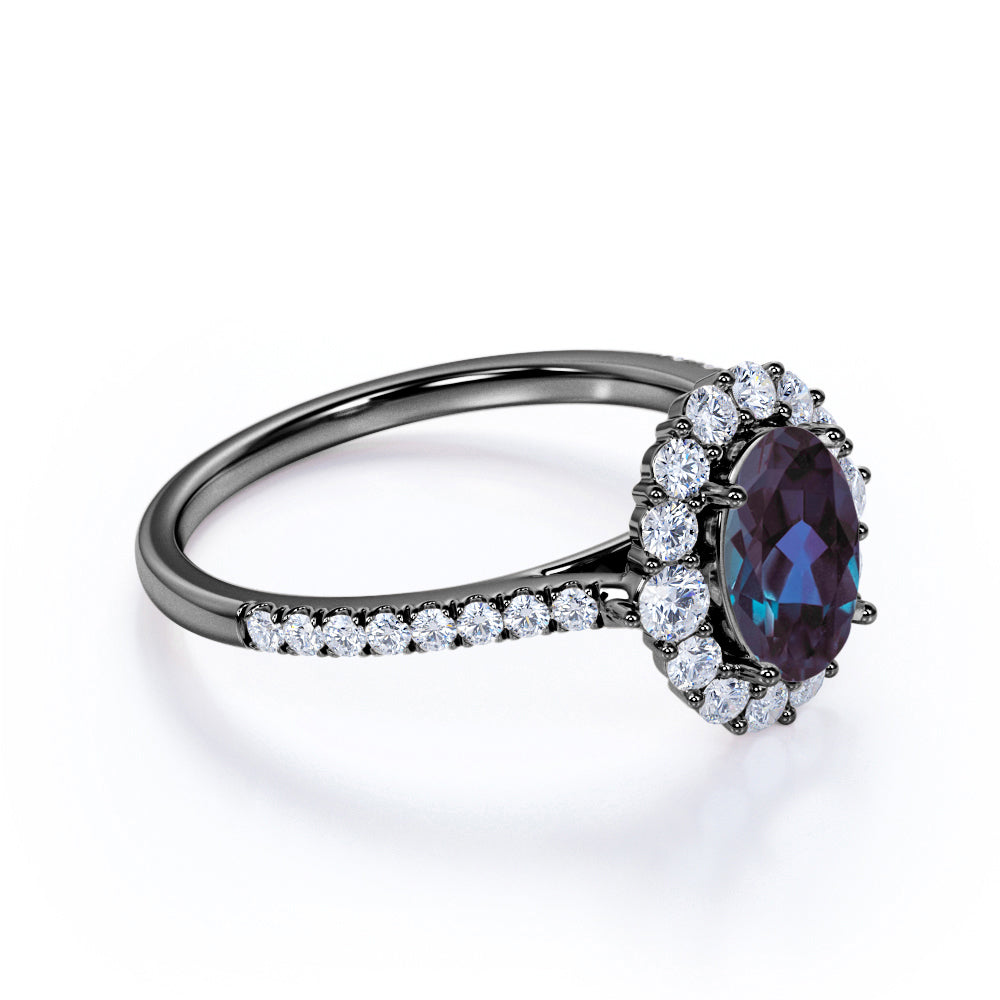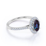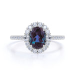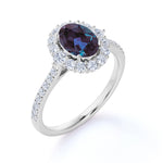 Snowflake Cluster 1.50 Carat Oval Cut Lab Created Alexandrite and Diamond Halo Engagement Ring