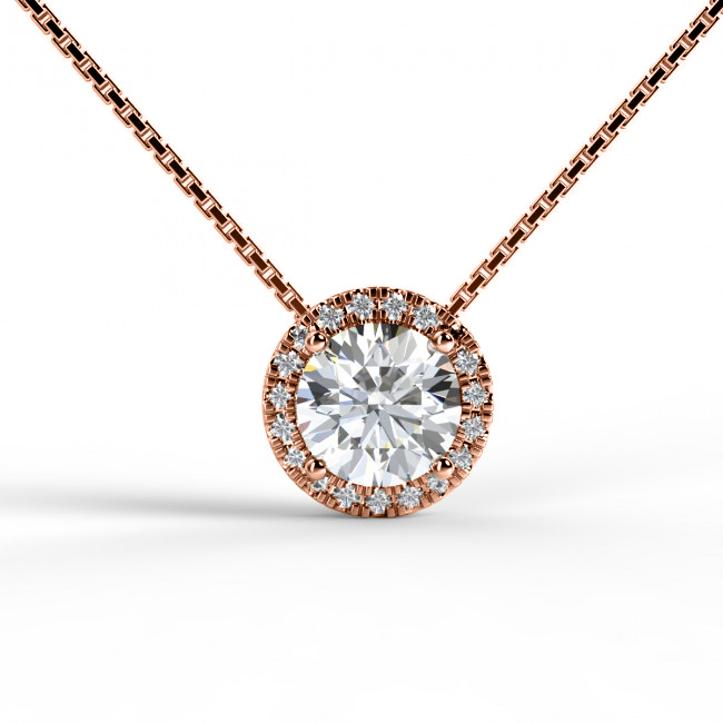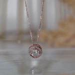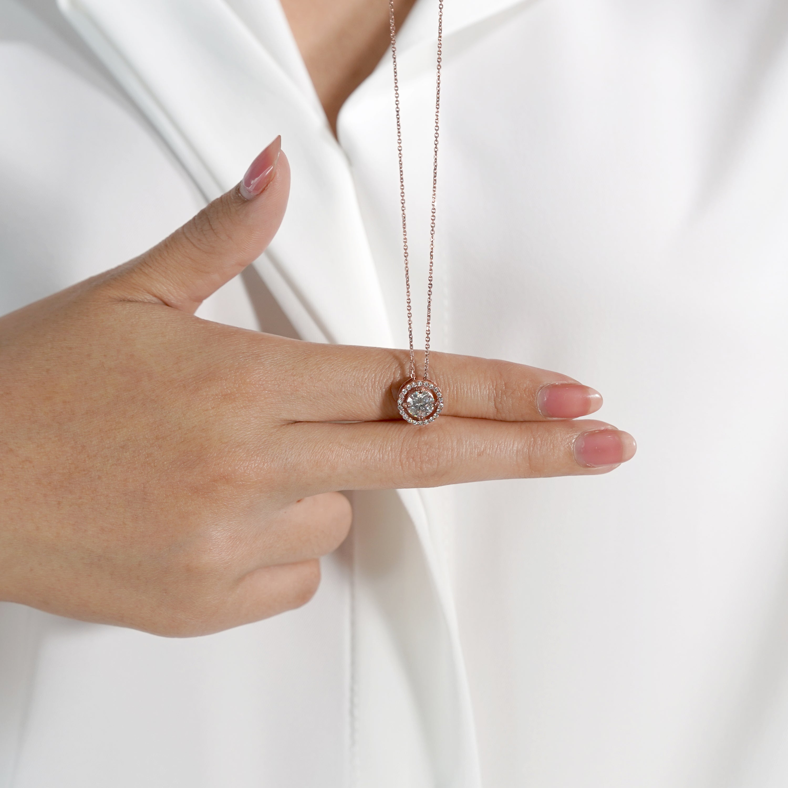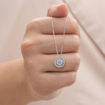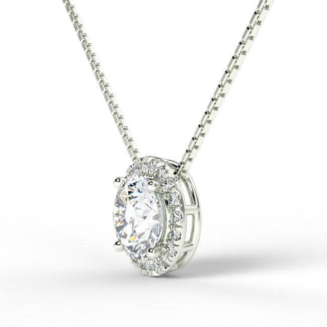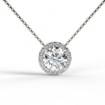 Solitaire 1.25 Carat Round Cut Real Moissanite Halo Pendant Necklace in 18k White Gold Over Silver