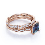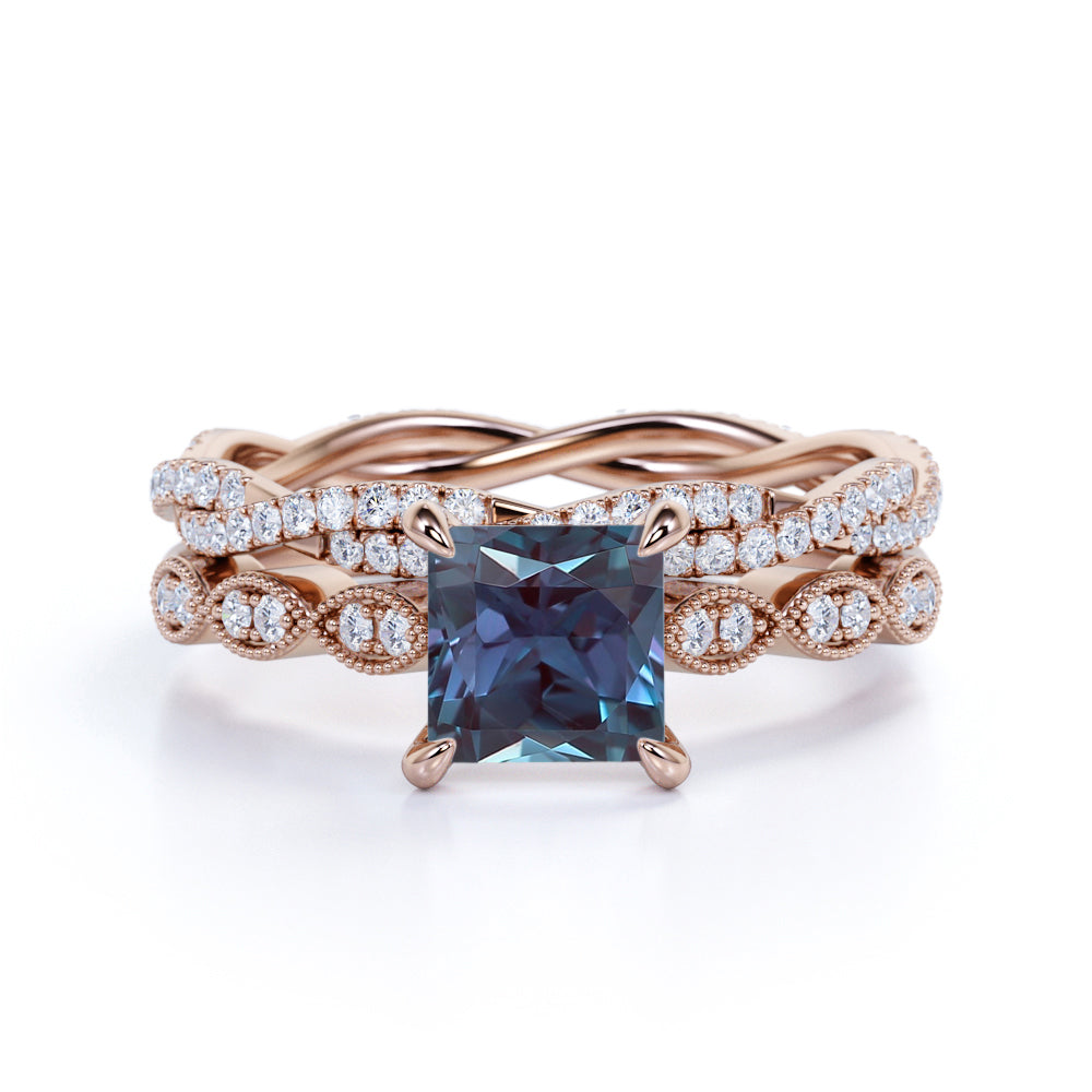 Infinity 1.75 Ct Princess Lab Alexandrite Bridal Set