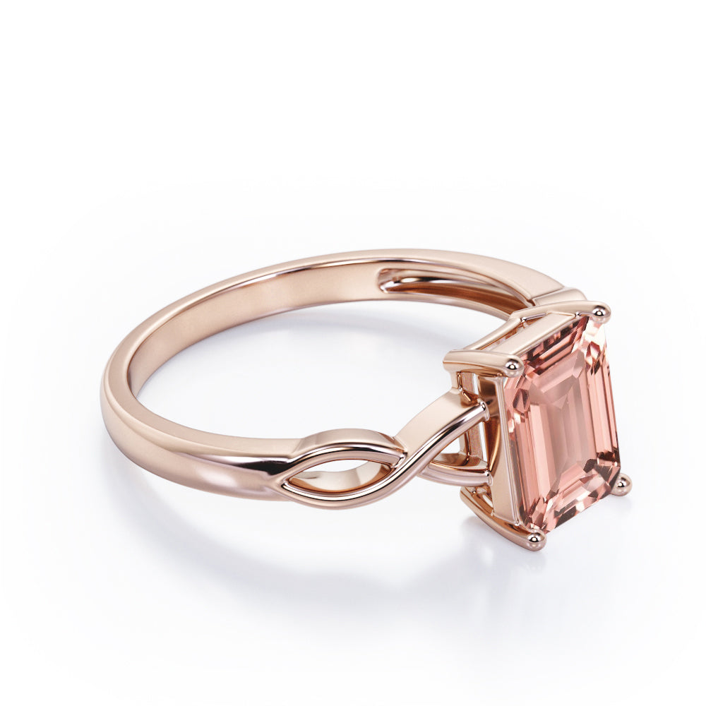 Solitaire 1 Carat Emerald Cut Morganite Infinity Engagement Ring In Rose Gold