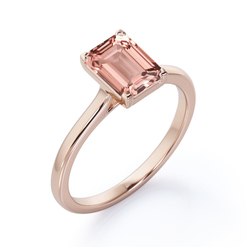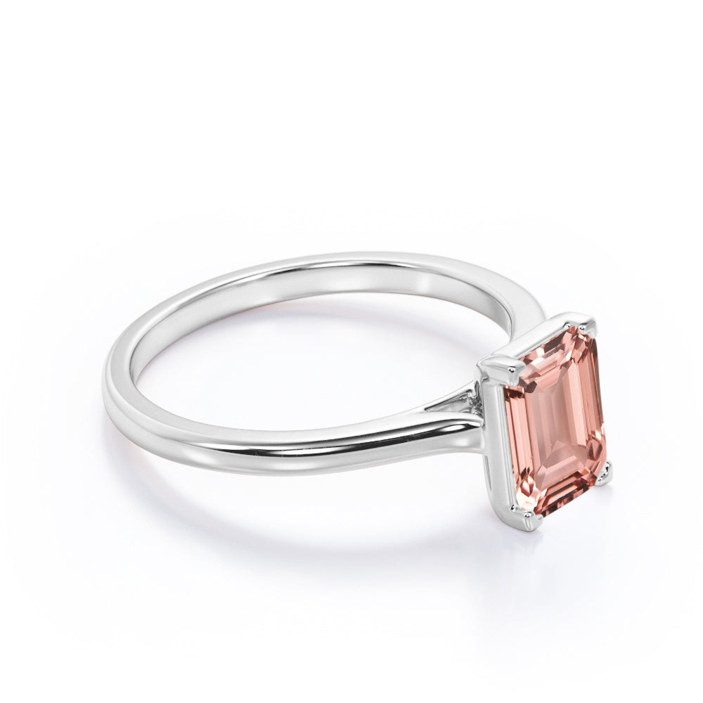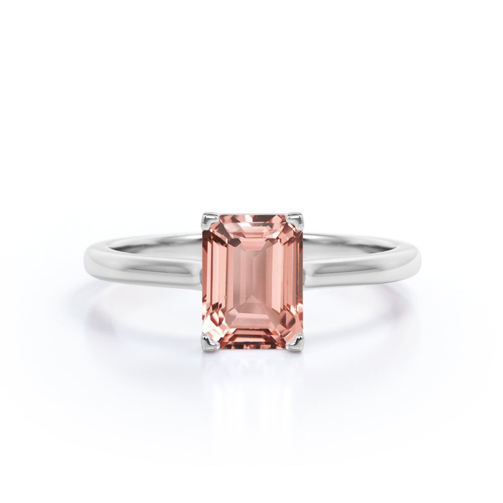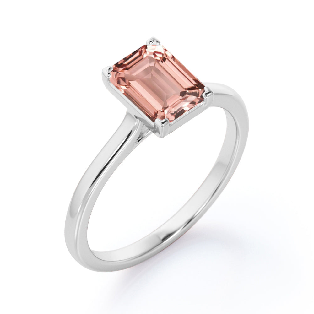 Solitaire 1 Carat Emerald Cut Morganite Engagement Ring in White Gold. This Classic Style Engagement Ring will surely catch her attention.