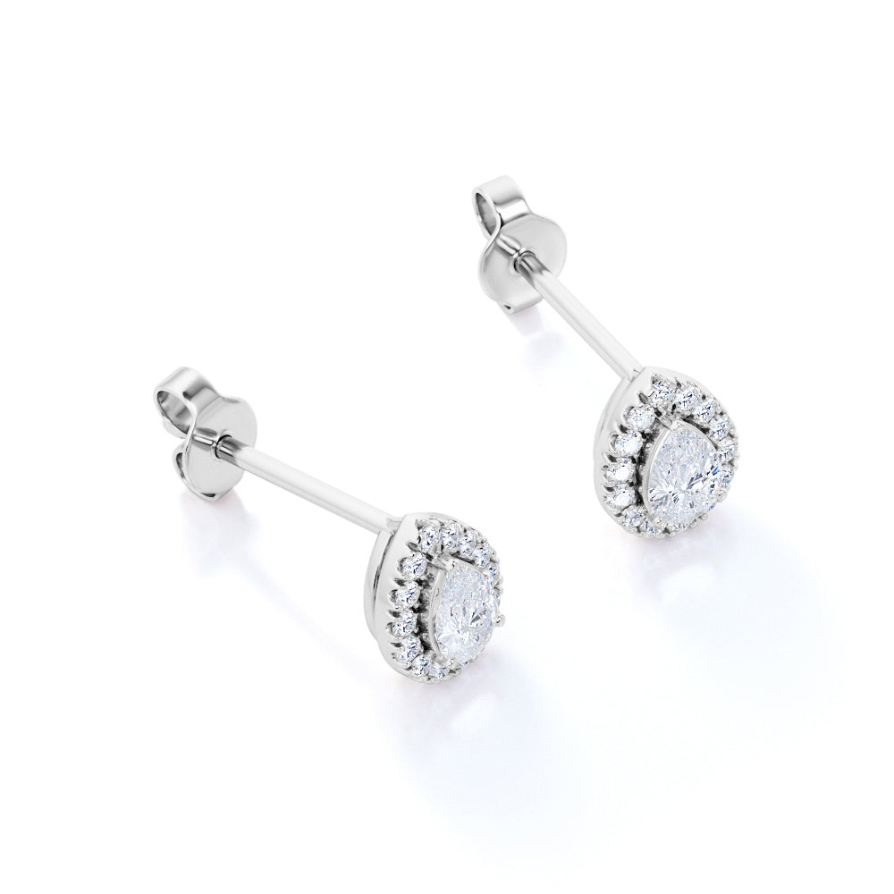 Solitaire Bezel Set 1.10 Carat Pear Cut Certified Moissanite and Diamond Micro Pave Studs - Earrings in White Gold for Women