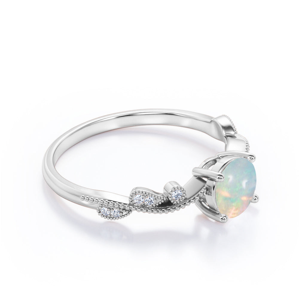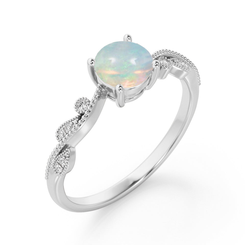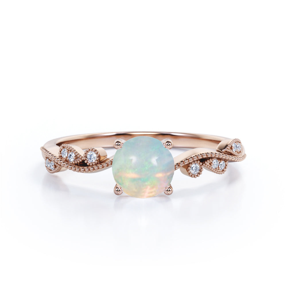 Art Deco 1.50 Ct Round Cut Lab Created Opal Engagement Ring