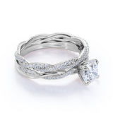 Precisely handmade with love, this Twisted 1CT Round Cut Certified Lab Diamond Eternity Pave Band Bridal Set in White Gold always shines as bright as your never-ending love. Featuring a 0.50 carat round Certified Lab Diamond and 0.5 carat side Moissanites, for a total of 1 carat. It can be customized in Rose Gold, White Gold, Black Gold, or Yellow Gold, and in 18k Gold over Silver, 10k, 14k, or 18k. Carefully crafted by our expert jewelers, this ring comes with a 6-month limited warranty. Perfect for any occasion, it makes an ideal gift for anniversaries, birthdays, Christmas, Valentine's Day, Mother's Day, and more. This captivating ring represents love and commitment and will make you stand out with its brilliance. The order includes a 30-day full refund policy, 30-day free resizing, and a limited 6-month warranty.