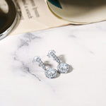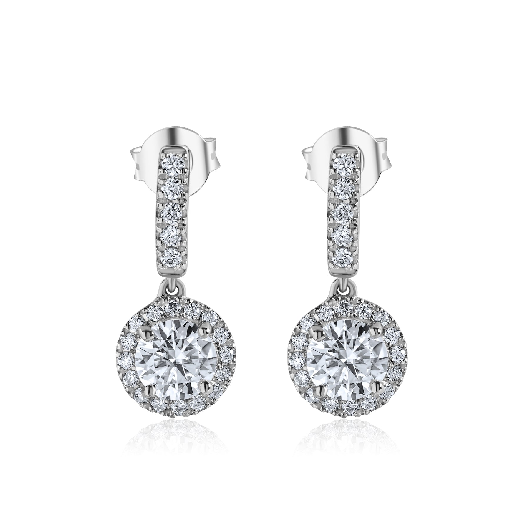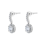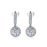 Sparkling 1.25 Ct Round cut Certified Lab Diamond Halo Drop Earrings in 18K White Gold Plating over Silver for Women