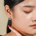 Discover the elegance and allure of Sparkling 1.25 Ct Round cut CVD Lab Grown Certified Lab Diamond Halo Drop Earrings in 18K White Gold Plating over Silver for Women, crafted with precision in sterling silver and adorned with an 18K White gold finish. These exquisite earrings feature lab-grown CVD Certified Lab Diamonds, each side weighing 0.5 carat surrounded with 0.25 moissanite as side stones. These earrings are not only a testament to timeless style but also reflect a commitment to environmental sustainability. The CVD Certified Lab Diamonds are ethically produced, offering a brilliant, guilt-free alternative to mined Certified Lab Diamonds at a fraction of the cost. Ideal for those who appreciate luxury but demand ethical sourcing, these earrings make a perfect gift for anniversaries, weddings, or as a special treat to yourself. They combine the best of modern jewelry trends—lab-grown Certified Lab Diamonds, eco-friendly, and hypoallergenic—with classic elegance.