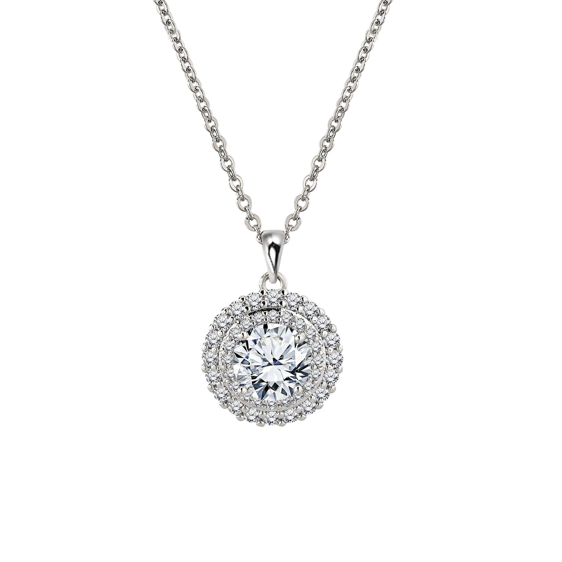 Capture all attention with our Sparkling Double Halo Pendant Necklace - Everyday Elegance Jewelry - Anniversary Gift – the epitome of everyday luxury jewelry and an ideal anniversary gift that perfectly captures the essence of enduring love and style. Crafted to embody simplicity and sophistication, this round cut pendant necklace showcases a stunning round-cut pendant adorned with a mesmerizing double halo of radiant cubic zirconia stones with a total weight of 2.5 Carat. Designed to seamlessly blend into your daily routine, the double halo pendant is a true embodiment of the concept of daily wear jewelry. Its refined aesthetic strikes a balance between timeless elegance and contemporary allure, making it a versatile piece that effortlessly transitions from casual outings to special occasions. Featuring a classic design and being offered at this price, this necklace is surely a quality affordable jewelry.