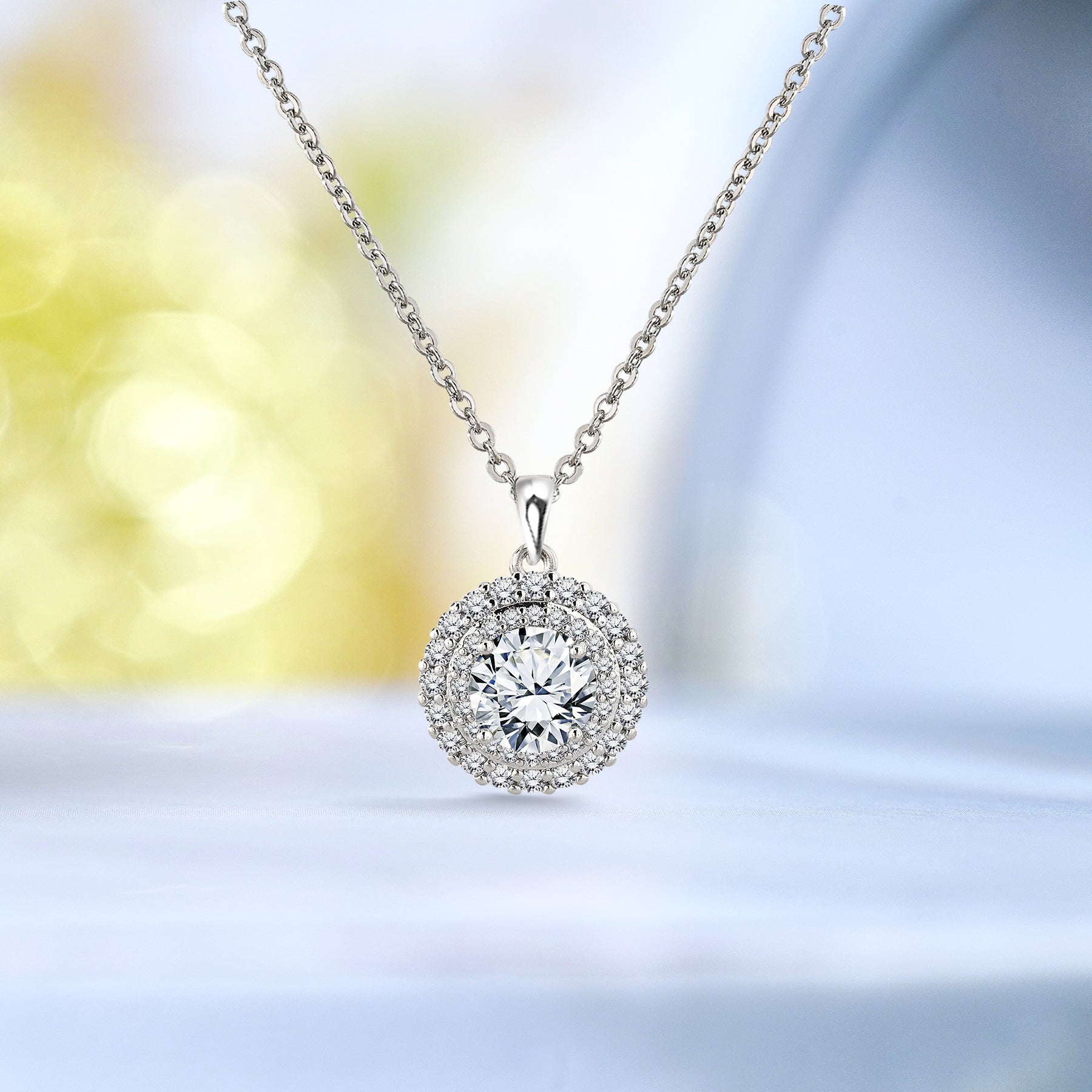 Sparkling 2.5 Carat Double Halo Pendant Necklace - Everyday Elegance Jewelry - Anniversary Gift