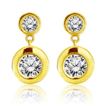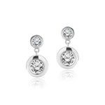Sparkling 2.5 Carat Double Round Cut Stone - Bezel Set - Women's Dangle Earrings in Silver