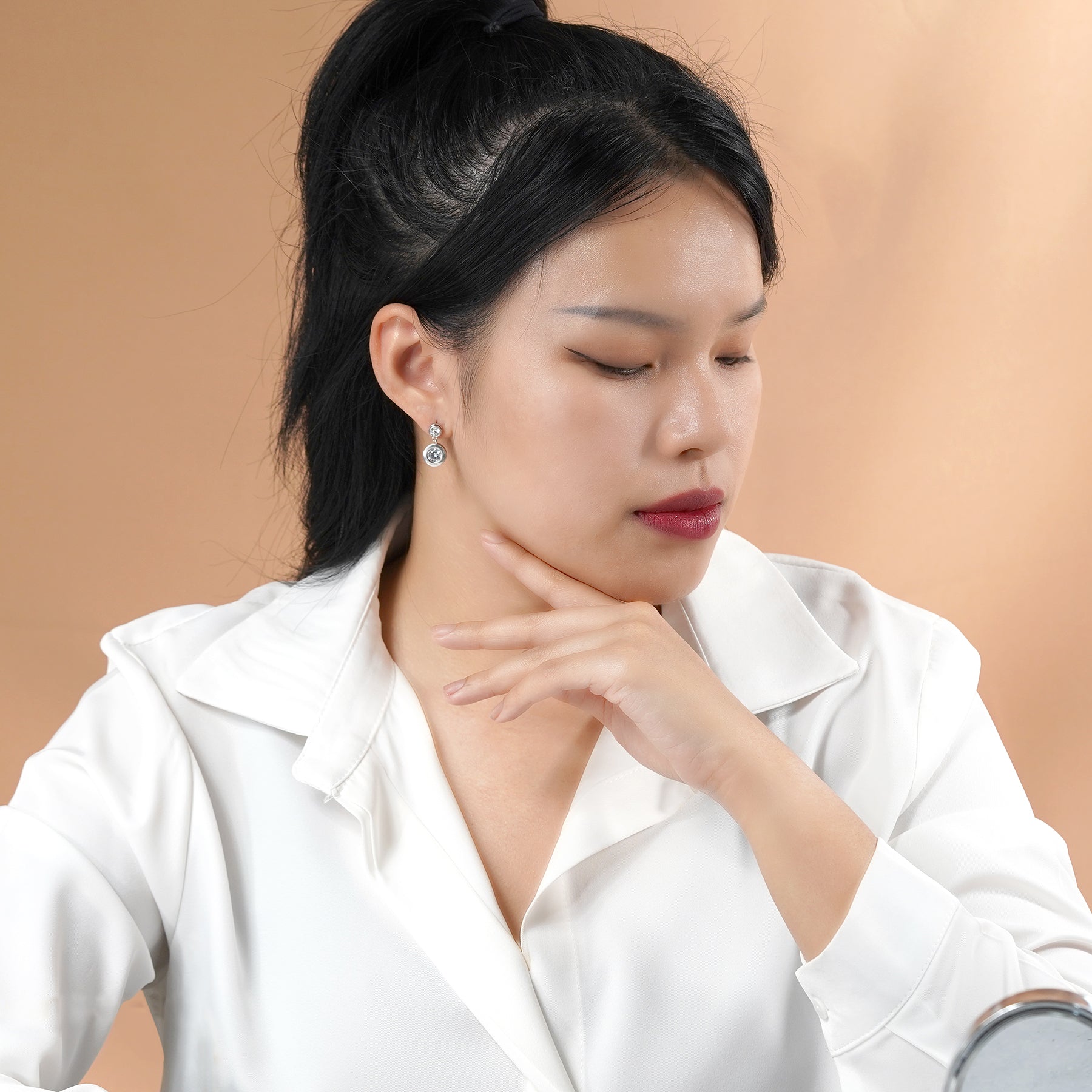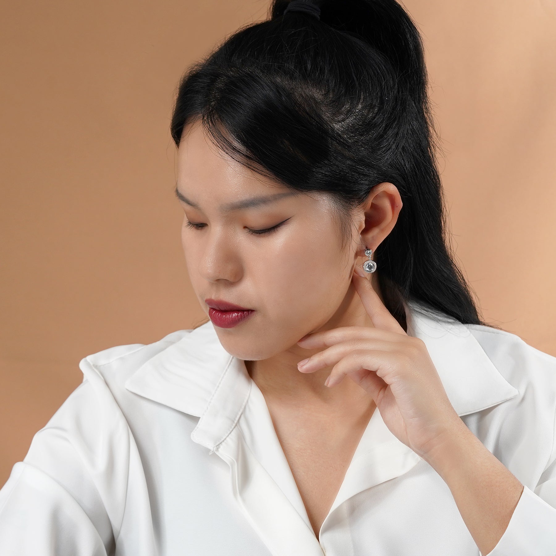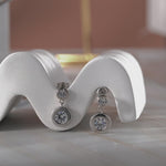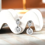 Explore a harmonious fusion of elegance and brilliance with our Sparkling 2.5 Carat Double Round Cut Stone - Bezel Set - Women's Dangle Earrings in Silver. Each earring of this pair of bezel cubic zirconia earrings features a double round cut stone design in bezel set to showcase the impeccable craftsmanship and attention to detail. The bezel setting not only secures the stones firmly in place but also adds a touch of modern sophistication to the bezel drop earrings. The dangling circle earrings design creates a graceful movement that captures attention with every turn of your head. These round dangle earrings reflect light from every angle, illuminating your presence with a radiant sparkle that's hard to miss. Featuring a total carat weight of 2.5 carats, these earrings offer the brilliance of larger stones for those who are looking for 2 carat cz stud earrings while maintaining an affordable price point. Whether you're dressing up for a glamorous event or looking to add a touch of elegance to your everyday style, these earrings are the perfect choice.
