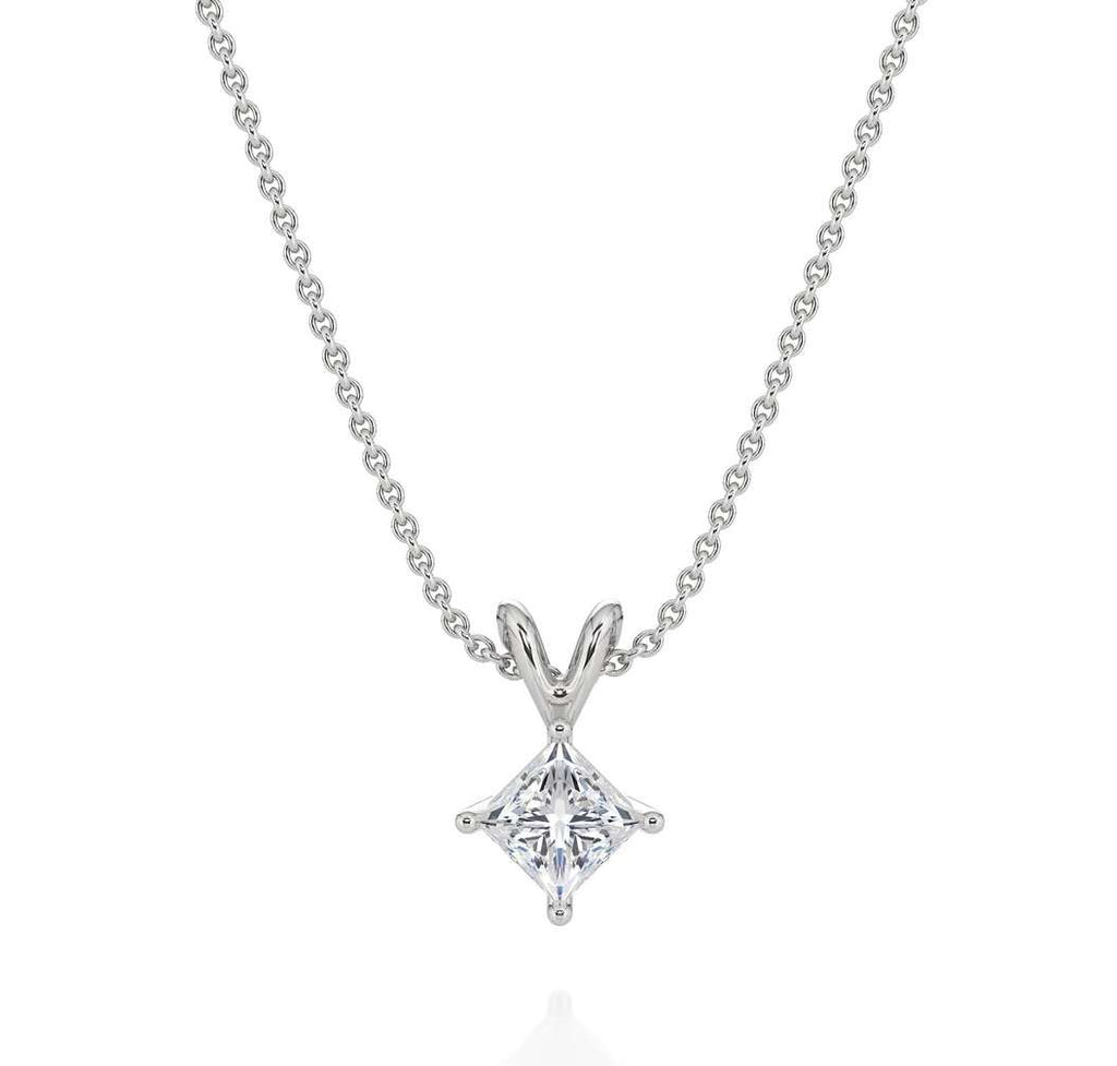 Sparkling Princess Cut Certified Lab Diamond Pendant Necklace in 18K White Gold over Silver
