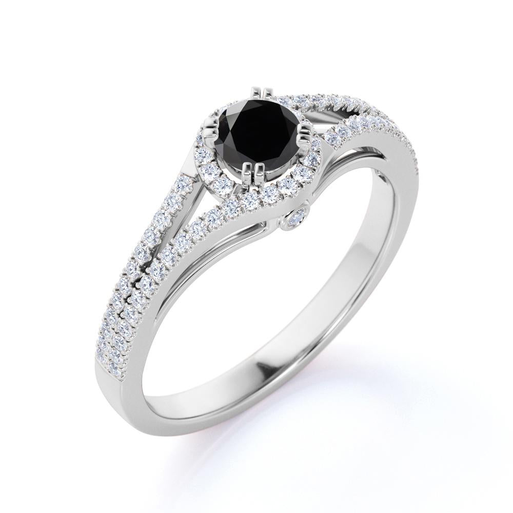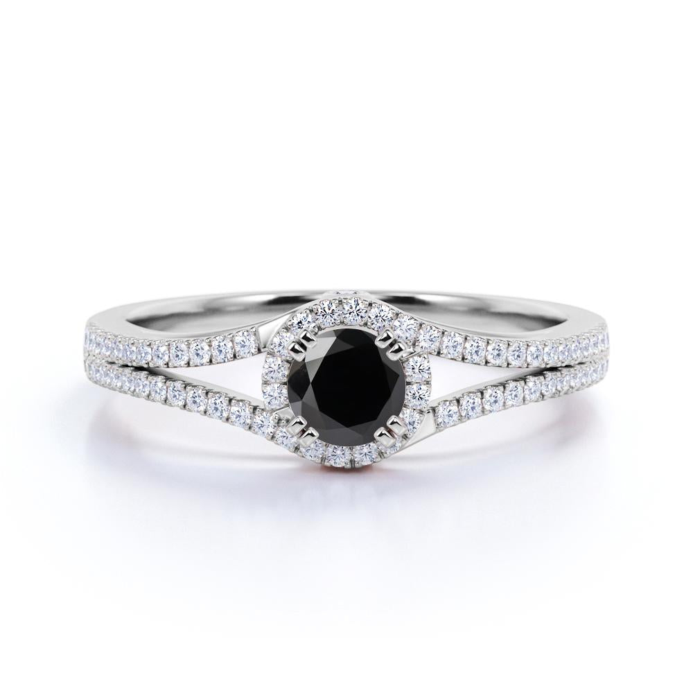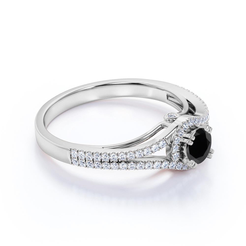Split Shank 1.25 Carat Round Lab Black Diamond and Fishtail Engagement Ring in White Gold