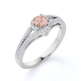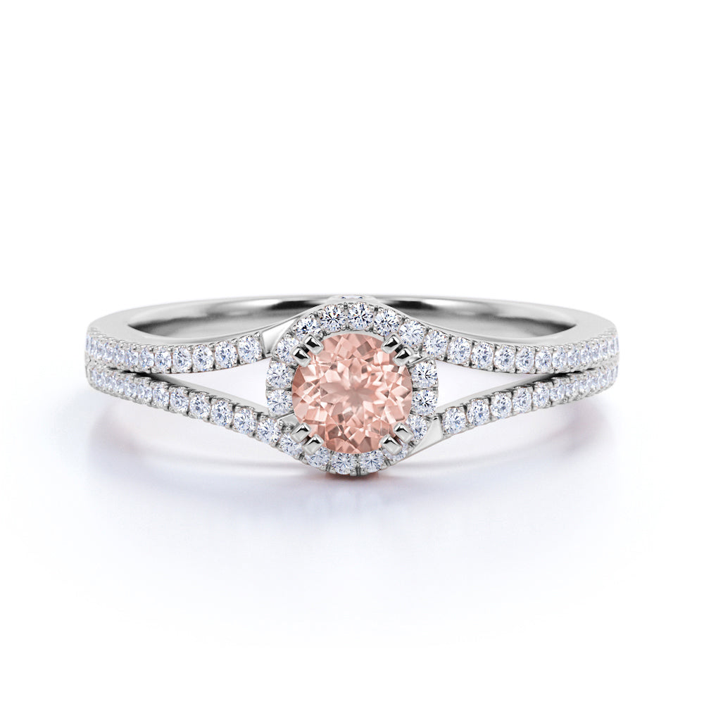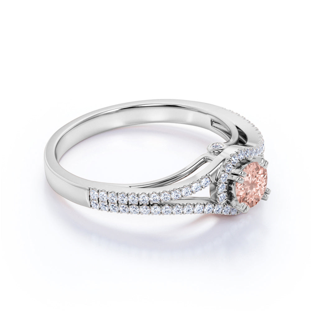 Split Shank 1.50 Carat Round Baby Peach Morganite and Diamond Fishtail Engagement Ring in White Gold