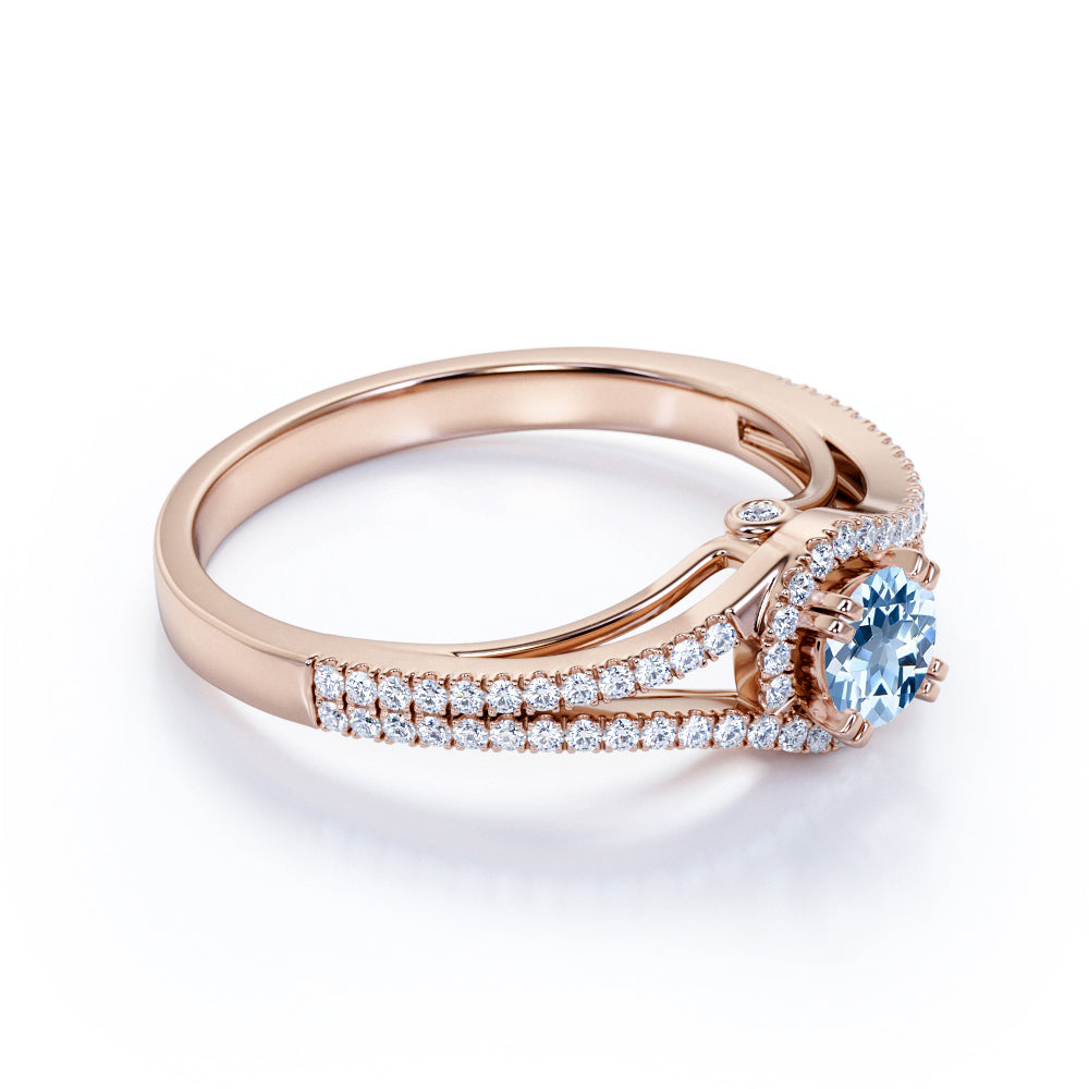 This aquamarine is very unique since we can customized this to your preferred style or cut. Either in cushion, square, princess, pear, teardrop, round brilliant, oval, marquise, heart, trilliant, trillion, emerald, radiant, asscher or any other cut that you wish to receive. All of our aquamarines are conflict free and certified by our company. This aquamarine ring features an approximately 1 carat round shape natural aquamarine, surrounded by .50 carat certified side diamonds, for a total weight of 1.50 carats.
