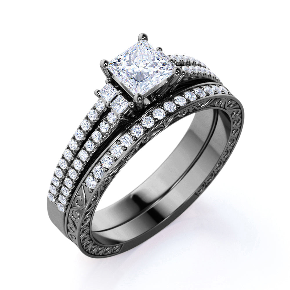What better way to profess and symbolize your undying affection but with this Stunning 1.25 ct - Princess Cut Moissanite - Pave - Vintage - Double Band Engagement Ring - Bridal Set crafted in luxurious 18K White Gold over Silver? Make your finger sparkle with this stunning Moissanite Engagement, Anniversary or Promise ring for women. This real natural Moissanite ring also makes a lovely engagement, anniversary, promise ring for women. This vintage Moissanite engagement or promise ring is very well suited for those who have a penchant for vintage and antique pieces. It is the perfect traditional gemstone ring as Moissanites embodies the idea of eternity and like your love, they are set to stand the test of time. This elegant Moissanite ring is the perfect everlasting addition to any woman's jewelry box. It is embellished with a stunning 0.33 carat genuine natural Moissanite center stone. Its beauty is further accentuated by a delicate medley of glimmering Moissanite side stones with a total weight of 0.92 carats. Make a loved one feel special or simply treat yourself with this very low priced but genuine Moissanite ring that can be cherished for years to come. Each of our handmade jewelry are meticulously crafted by our passionate artisans and as your satisfaction is our priority, all orders come with a 30-day refund policy.