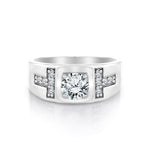 Stylish Men's 1.2 Carat Round Cut Moissanite - Clustered Side T-Shaped - Wedding Band Ring in 18K White Gold over Silver