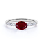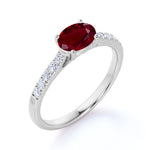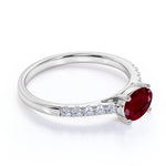 Surface Prong 1.50 Carat Egg Shaped Dark Lab Ruby and Diamond Parallel Engagement Ring in White Gold