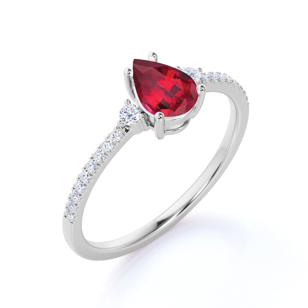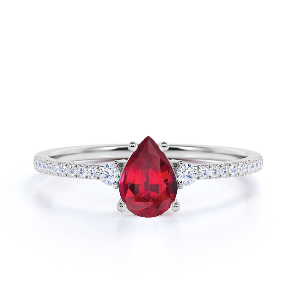 1.25 ct Pear Lab-Created Ruby Pave Engagement Ring