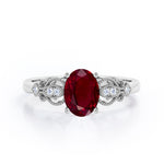 Love is filled in the air, it is smiling with joy and flair. One verse from a romantic poem that people use to express their feelings to their lovers. Fine jewelry is also another way to portray your love and it can be kept for a long time. The Swirly 0.5 carat Oval Ruby and Diamonds Antique Engagement Ring in Rose Gold displays a 0.5 carat oval Moissanite in the center while side of the band is crafted in curve lines with small round Moissanite inside. It is made into a crown-like and finish the look with Milgrain at the border to add some vintage touch to the promise ring. It can be made in 18k gold over silver, 10k gold and 14k gold with the color of white gold, rose gold, yellow gold and black gold.