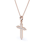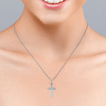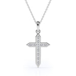 Sword 0.25 TCW Round Shape Moissanite Channel Crucifix Pendant Necklace in 18K White Gold Plating over Silver