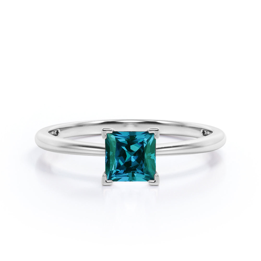 1 Ct Square Lab Alexandrite Solitaire Engagement Ring