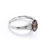 Tapered Prong Setting 1.15 Carat Oval Cut Druzy Black Rutilated Quartz and Diamond 7 Stone Classic Engagement Ring
