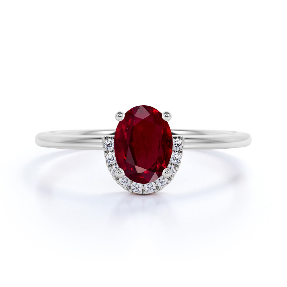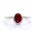 A stylish 1.25 Carat Oval Cut Ruby and Diamond Engagement Ring in White Gold for women. Handmade and customized to perfection, this teardrop design engagement ring is made with natural ruby, real diamonds and on solid gold. As always, the order comes with jewelry certificate, 6 month limited warranty and 30 days full refund policy. Although each ring is handmade and customized to your specifications, we guarantee that once you placed your order, we will make and deliver it to you within 5 business days.