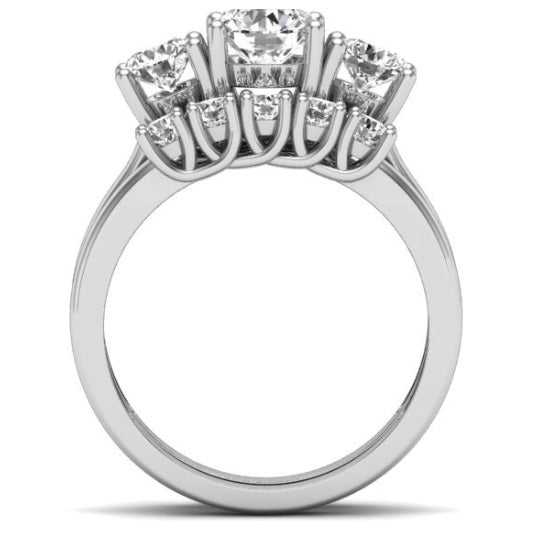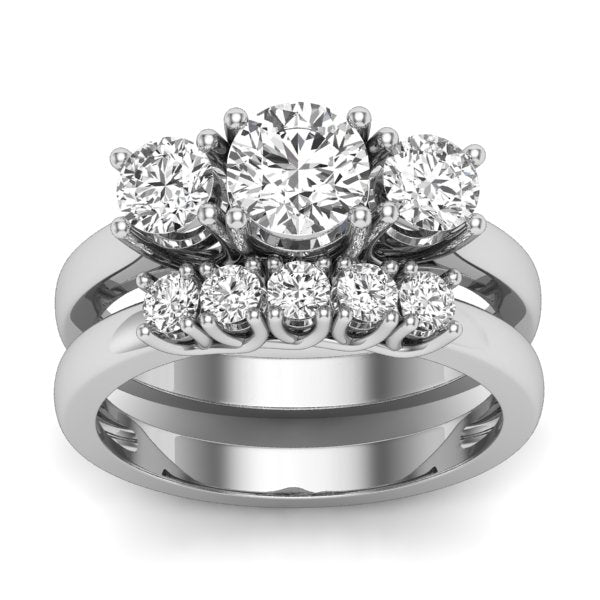 Three Stone 1.25 Carat Round Cut Moissanite and Diamond Wedding Set in 10k White Gold