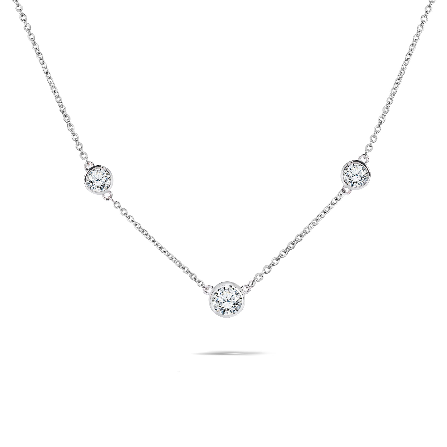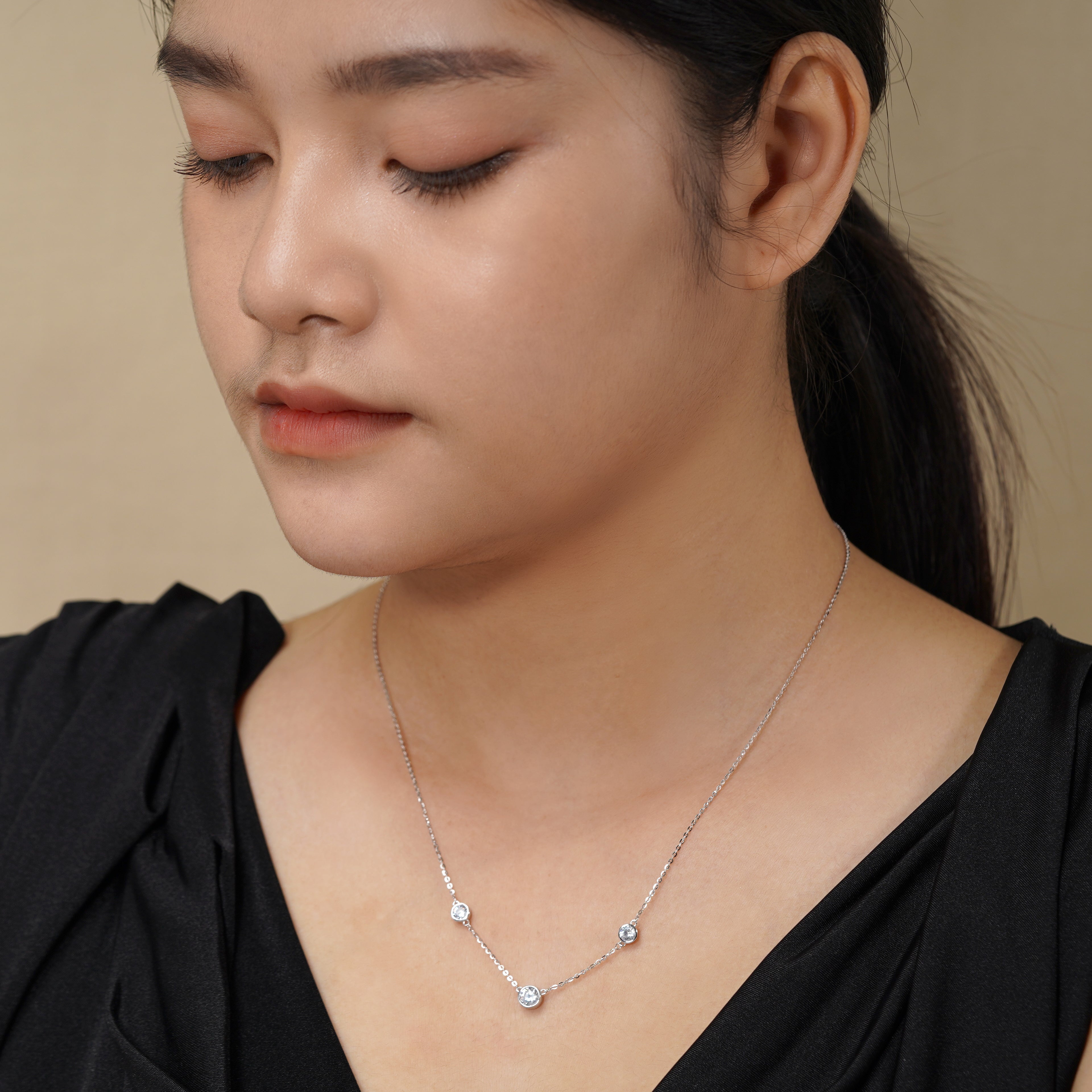 Three Stones Bezel Set Station Necklace in Silver - Elegant Fashion Necklace